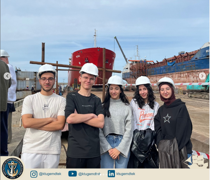 Karadeniz Teknik Üniversitesi Gemi İnşaatı ve Deniz Teknolojileri Kulübü (GEMDTEK) üyeleri, 22 Ekim 2025 tarihinde denizcilik sektörüne dair uygulamalı deneyim kazanmak amacıyla Trabzon Tersanesi’ni ziyaret ederek MONA adlı geminin suya indiriliş sürecini izledi.