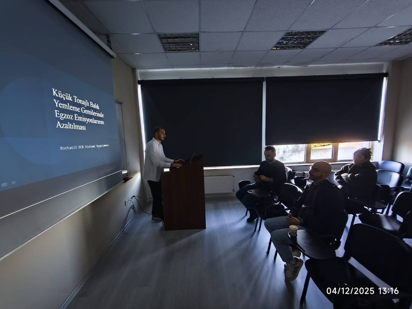 Yüksek Lisans Öğrencimiz Taha Celal ALEMDAR GIM5010 Seminer Dersi kapsamında "Küçük Tonajlı Balıkçı Gemilerinde Hava Kirliliği ve SCR (Seçici Katalitik İndirgeme) Sistemleri ile Azaltım Yöntemleri" konulu seminer sunumunu 04.12.2025 tarihinde yapmıştır.