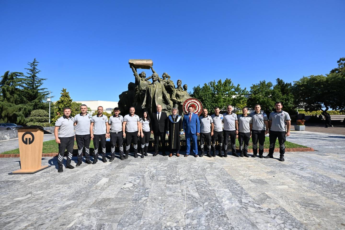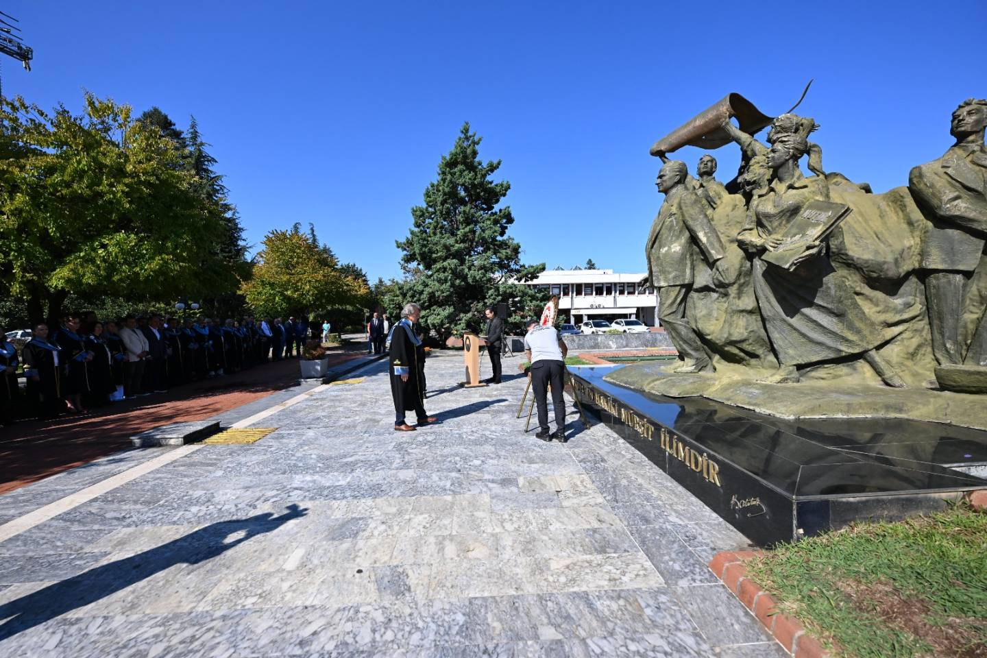 Rektör V. Prof. Dr. Ali TEMİZ, Rektör Yardımcısı Bünyamin ER ve Prof. Dr. Ömer Faruk URSAVAŞ ile Genel Sekreter V. Prof. Dr. Cemil RAKICI’nın iştirakiyle gerçekleştirilen 2025-2026 Eğitim-Öğretim Yılı Çelenk Sunma Töreni, saygı duruşu ve İstiklal Marşı’nın okunmasının ardından Rektör V. Prof. Dr. Ali TEMİZ’in, konuşmasıyla sona erdi.