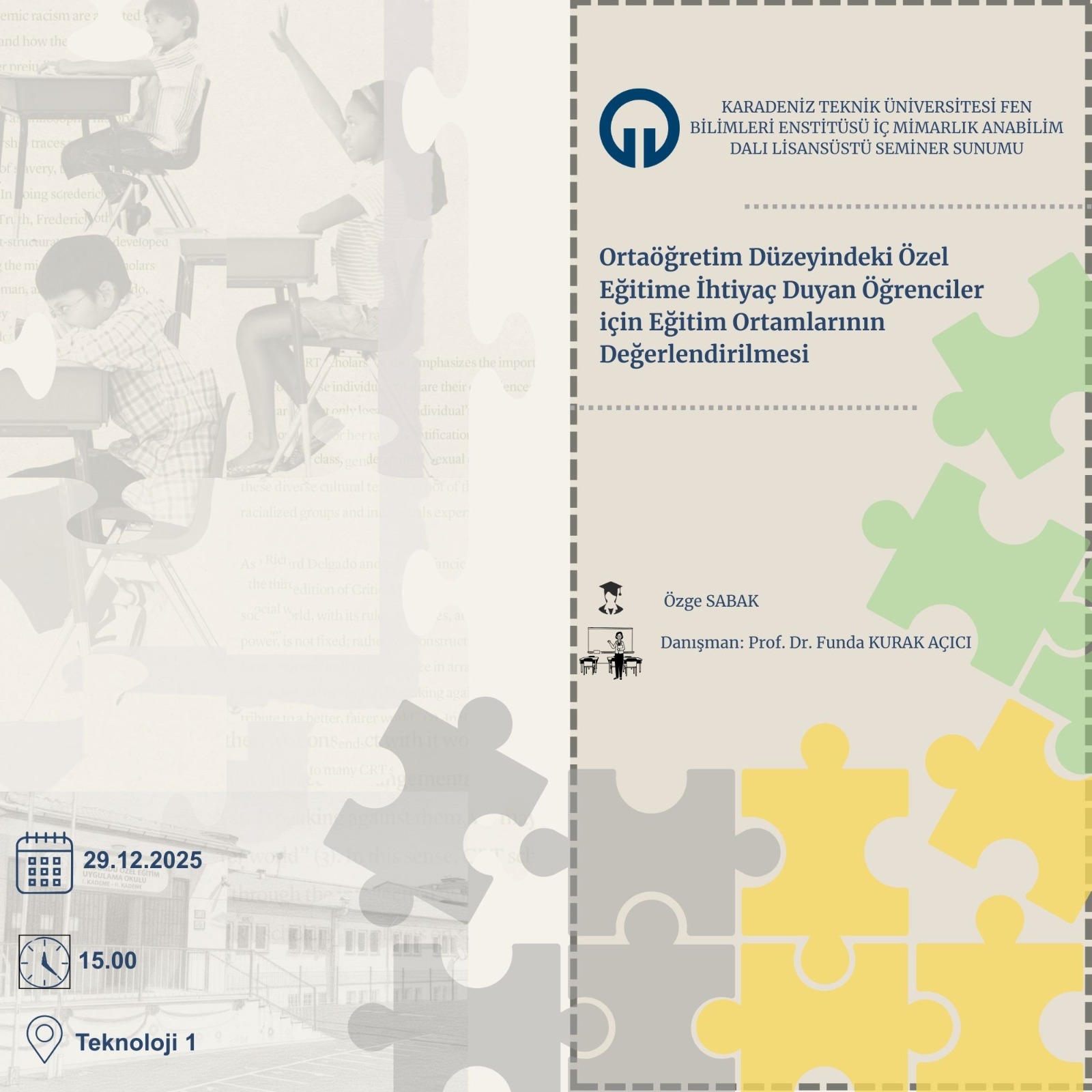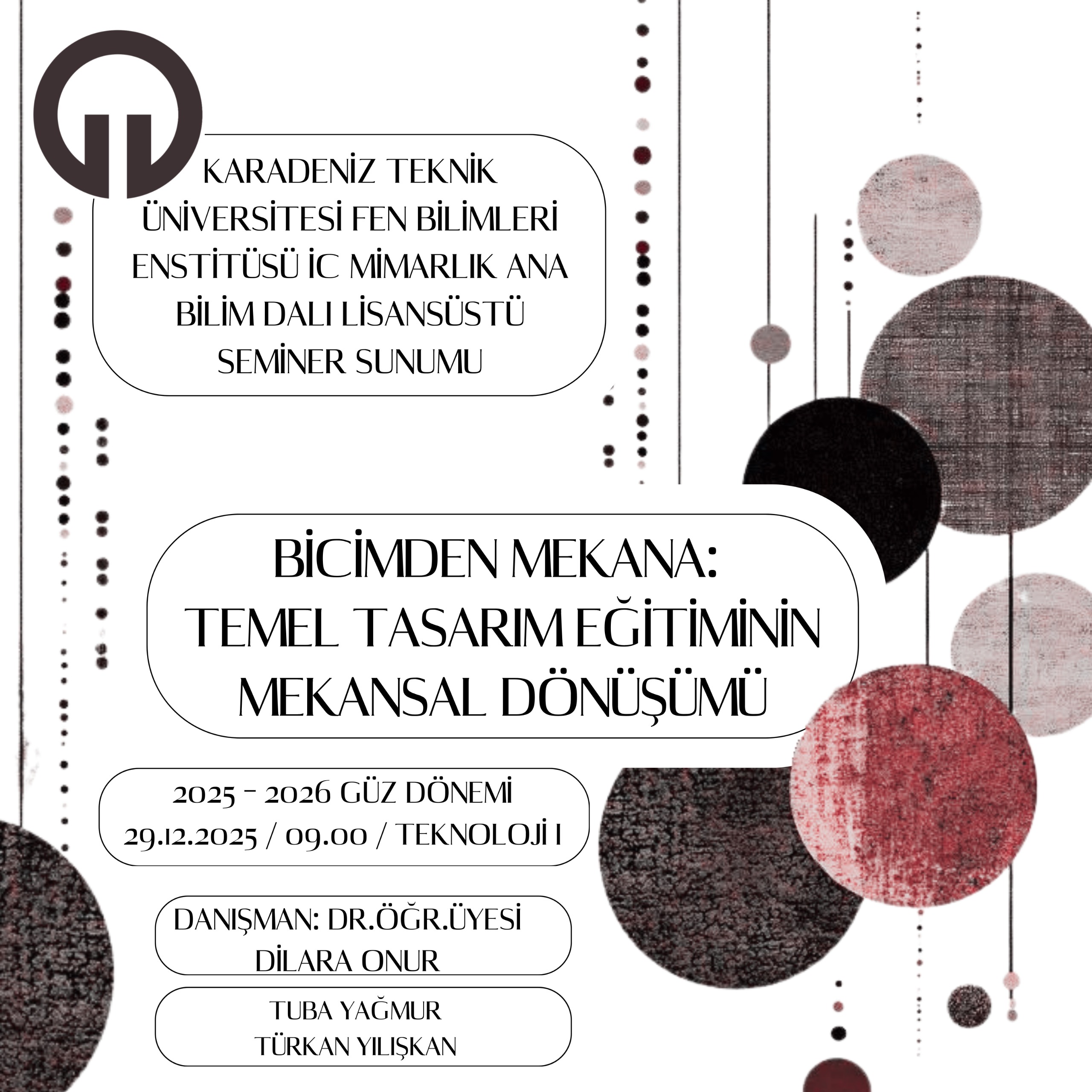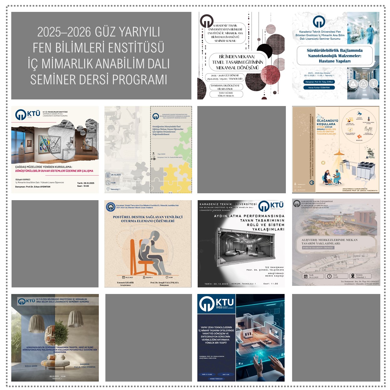 2025 2026 Güz Yarıyılı Fen Bilimleri Enstitüsü İç Mimarlık Anabilim Dalı Seminer Ders Programı