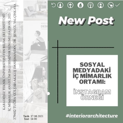 Seminer 1: "Sosyal Medyadaki İç Mimarlık Ortamı: İnstagram Örneği" Tuğba Gülşah AKKUŞ (Danışman: Doç. Dr. Şengül YALÇINKAYA)