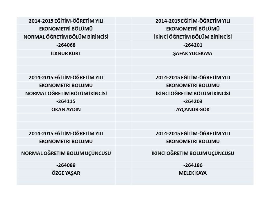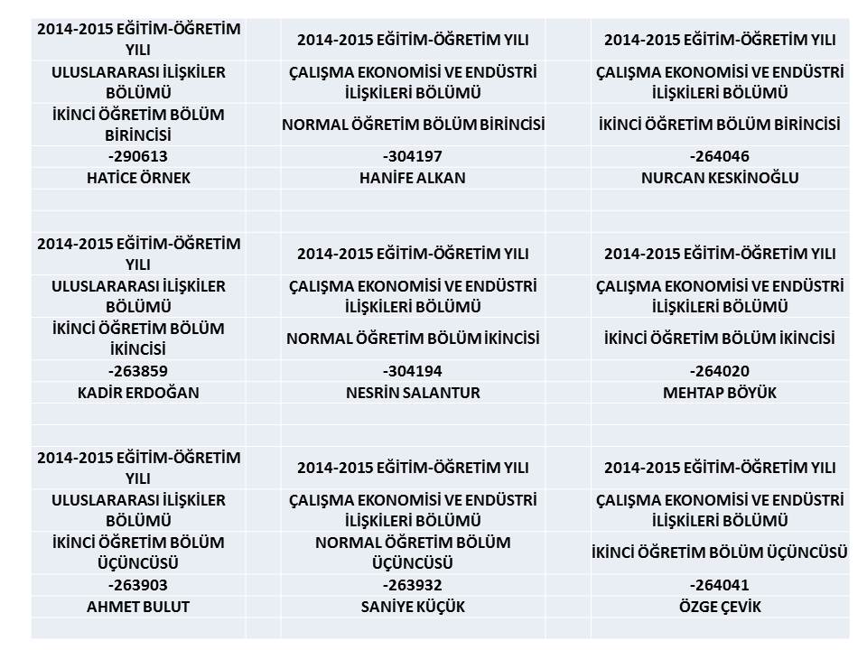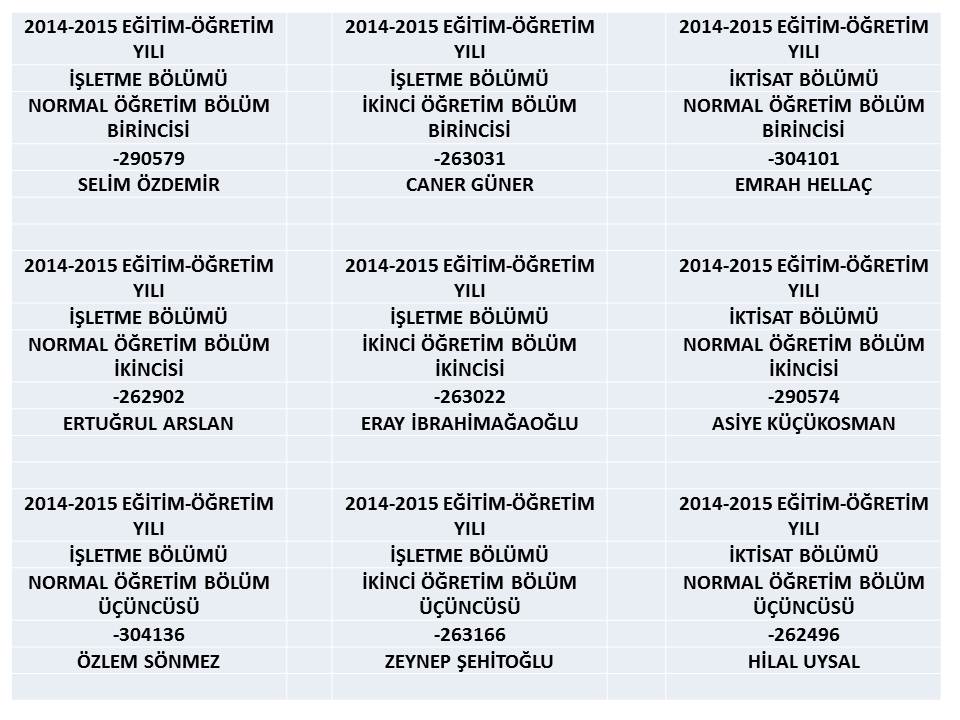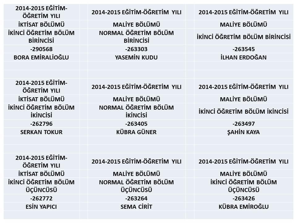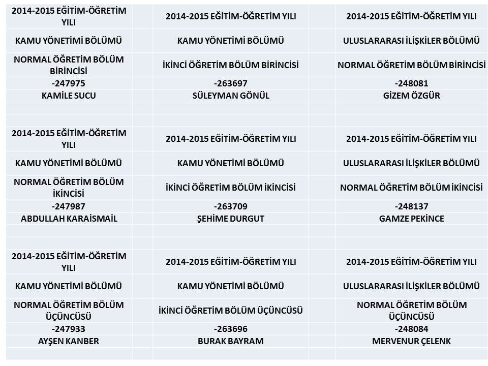 2014-2015 Eğitim-Öğretim Yılı Dereceye Giren Öğrenciler