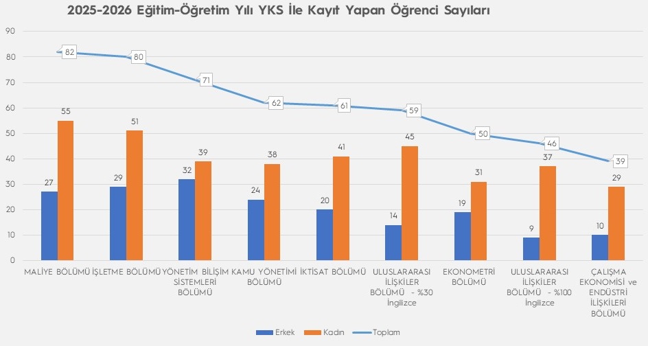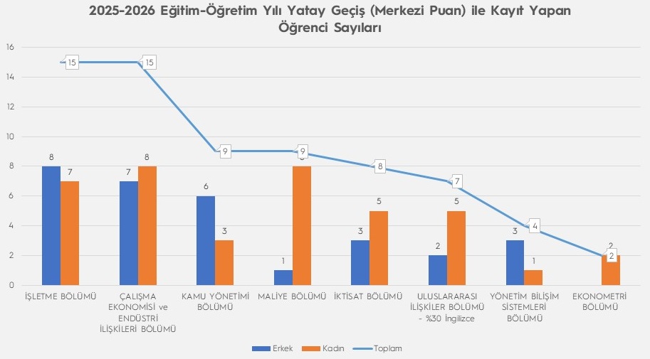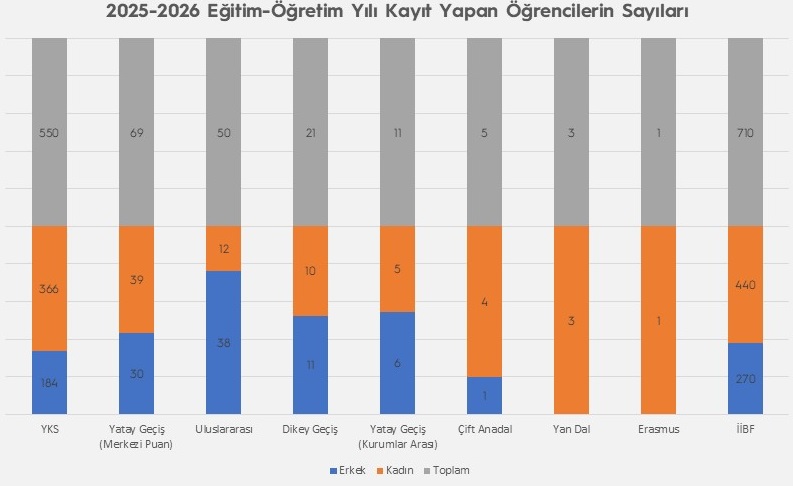 kapsamında kayıt yaptıran öğrencilerimizin sayıları, bölüm ve cinsiyet dağılımlarıyla birlikte kamuoyunun bilgisine sunulmuştur. Ayrıntılı veriler, fakültemizin bölümlerine göre öğrenci kabul durumunu ve giriş yollarına göre dağılımı ortaya koymakta; İİBF’nin ulusal ve uluslararası düzeyde tercih edilen güçlü fakültelerden biri olma özelliğini bir kez daha göstermektedir.