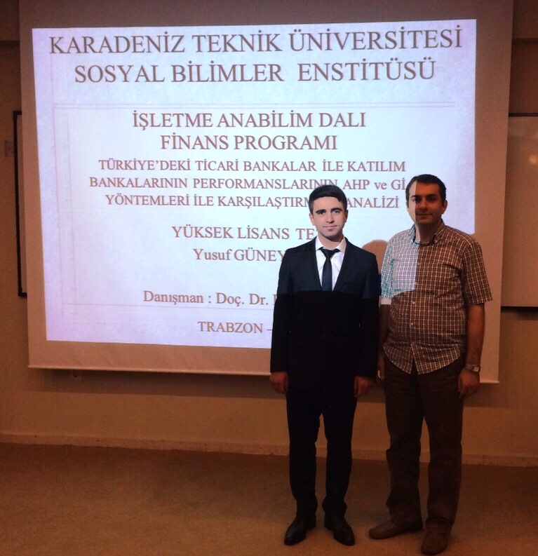 Araştırma Görevlisi Yusuf GÜNEYSU "Türkiyedeki Ticari Bankalar ile Katılım Bankalarının Performanslarının AHP ve GİA Yöntemleri ile Karşılaştırmalı Olarak incelenmesi" konulu Yüksek Lisans Tezini Başarı ile Savunarak Bilim Uzmanı Unvanı Aldı.