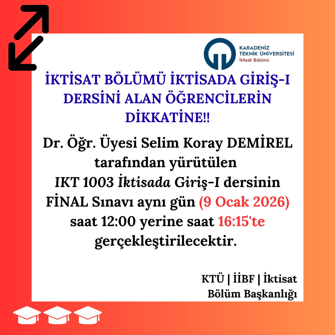 IKT 1003 İKTİSADA GİRİŞ-I Dersini Alan Öğrencilerin Dikkatine!! (Final Sınavı Saat Değişikliği)