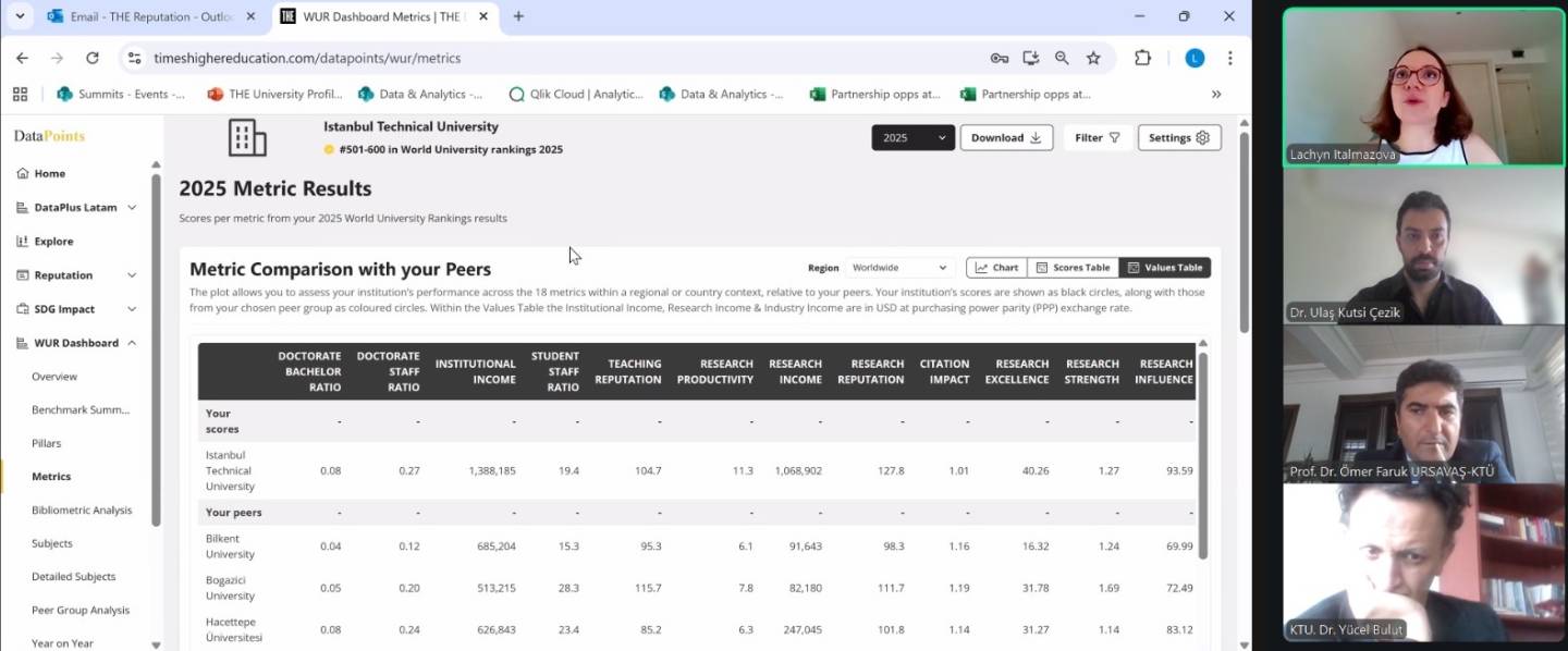 Accordingly, to maintain Karadeniz Technical University rise in international rankings and achieve its strategic goals in this area, it was decided to intensify contact and cooperation with leading ranking institutions, especially THE and QS. Karadeniz Technical University is determinedly advancing toward becoming a more visible and influential university internationally through its efforts in scientific productivity, academic quality, and global engagement.