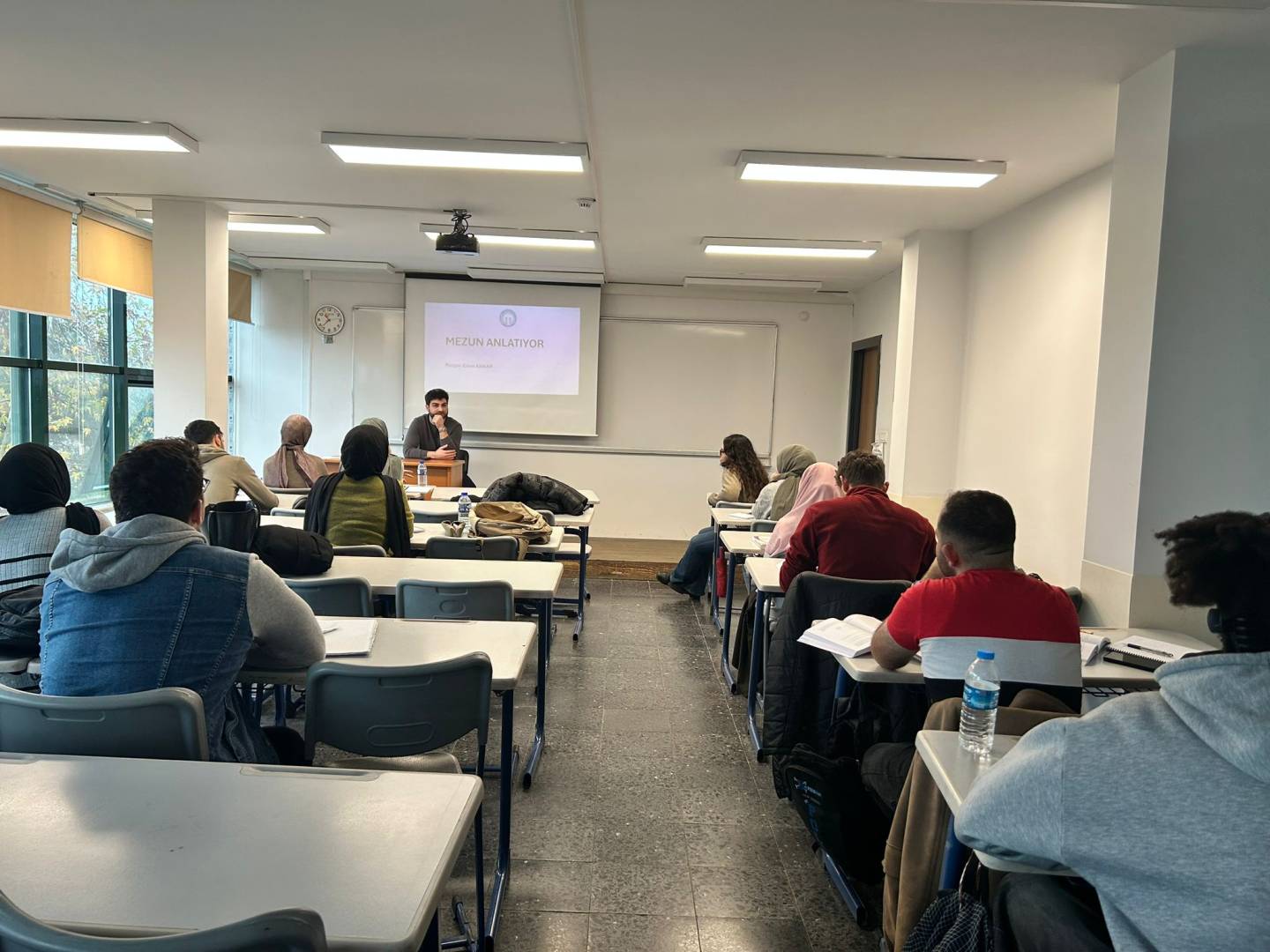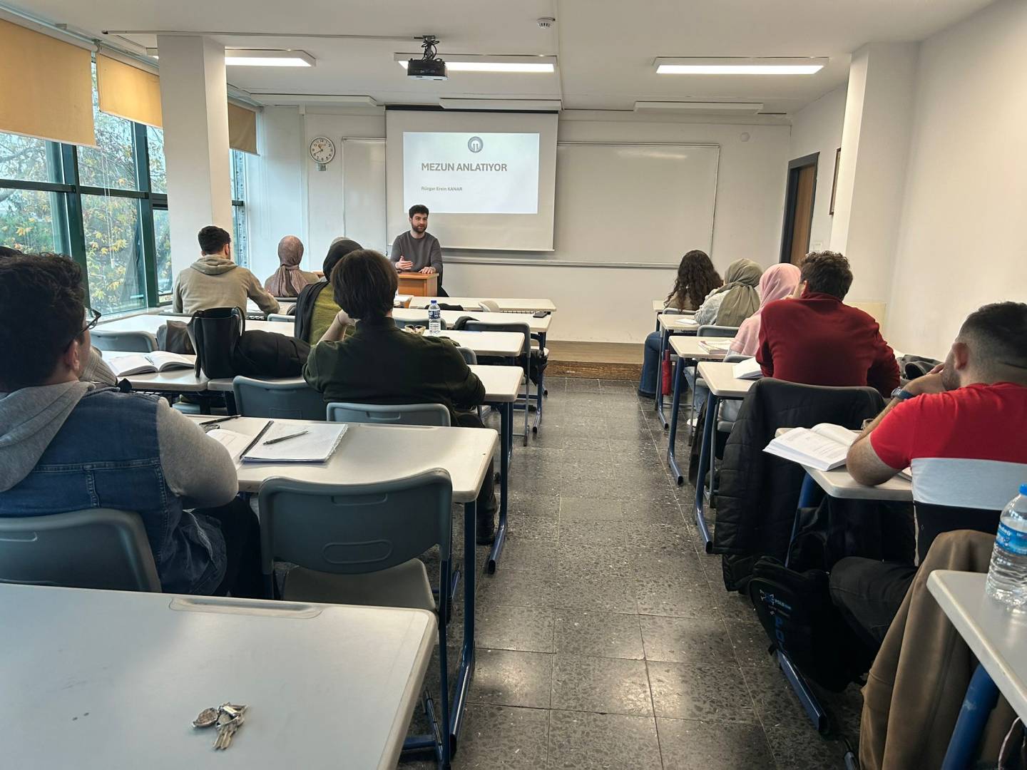 Gerçekleştirilen buluşma, öğrencilerimizin mesleki farkındalıklarının artırılmasına, kariyer planlamalarına yön vermelerine ve mezun–öğrenci etkileşiminin güçlendirilmesine katkı sağlamıştır. Soru–cevap bölümüyle interaktif bir şekilde ilerleyen etkinlik, öğrencilerimiz için ilham verici bir deneyim sunmuştur. Değerli paylaşımları ve samimi sohbeti için mezunumuz Rüzgar Ersin KANAR’a teşekkür ederiz.