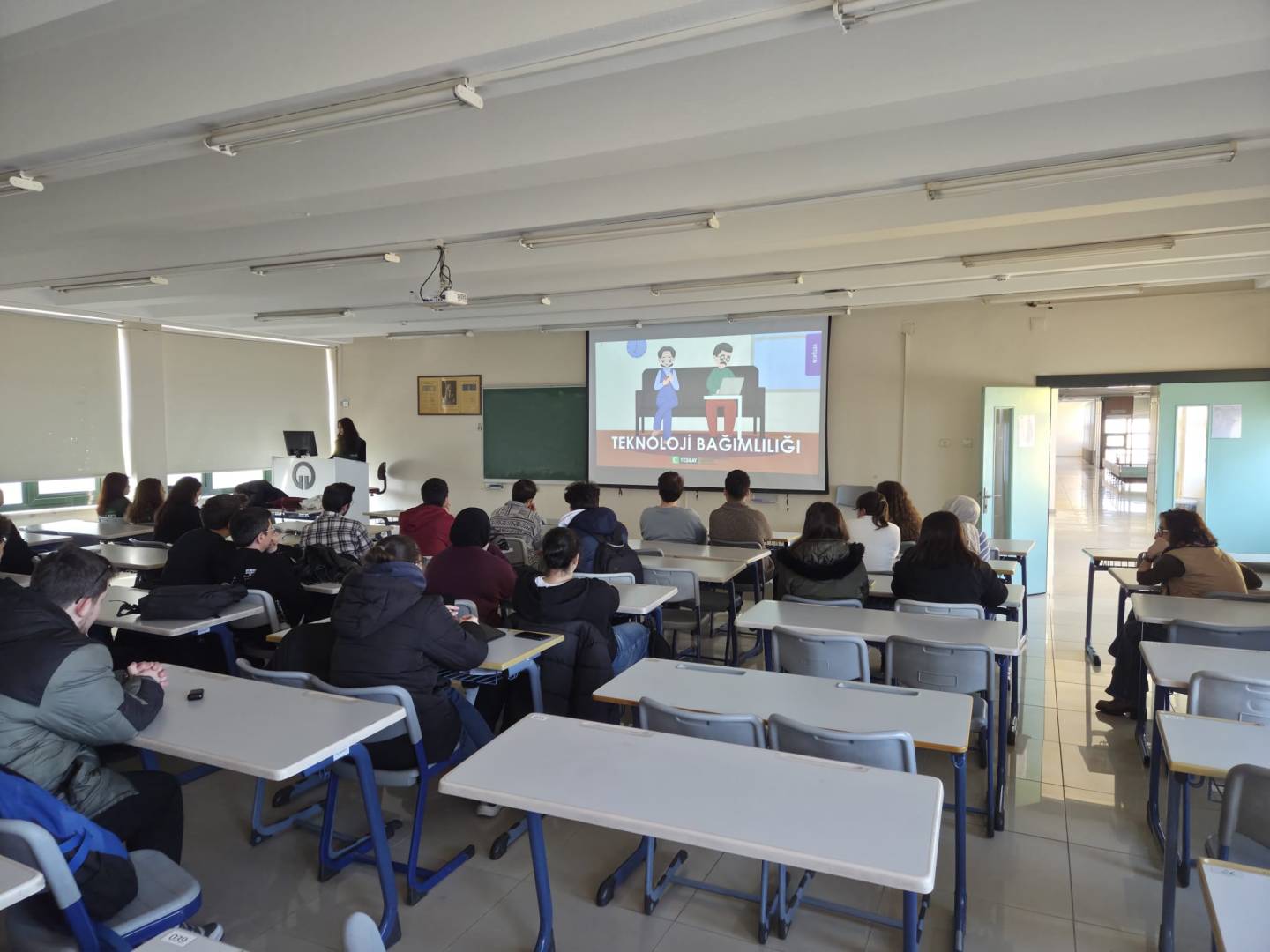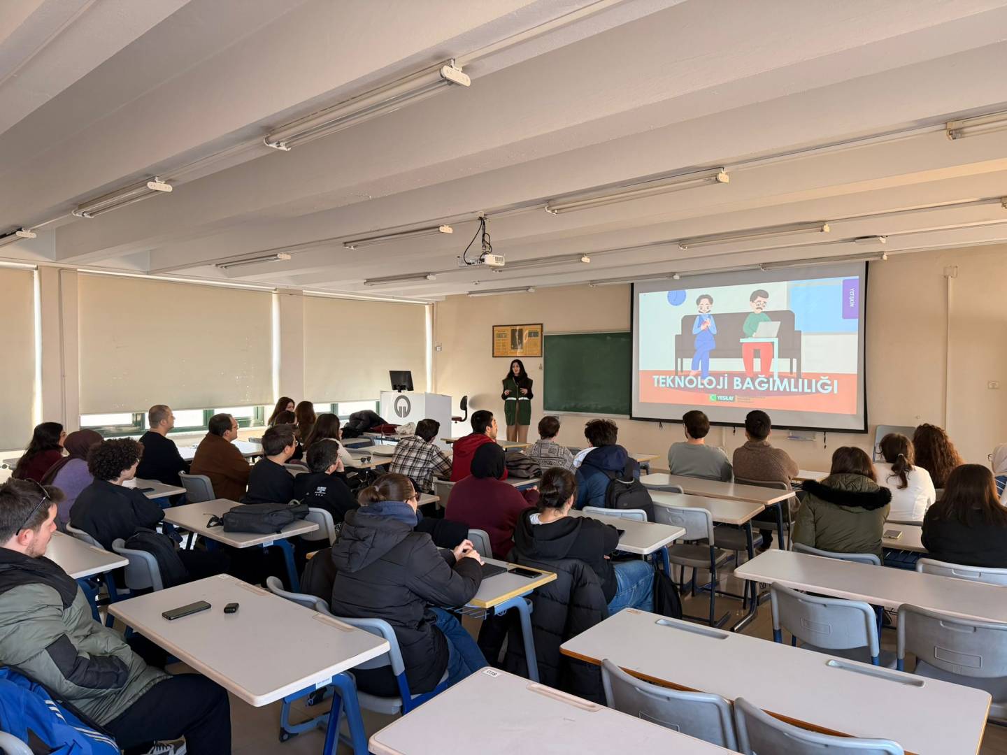 Etkinliğin sunuculuğunu Akran Eğitmeni Damla ÖDEN üstlendi. Program kapsamında teknoloji bağımlılığının bireylerin akademik, sosyal ve psikolojik yaşamları üzerindeki etkileri ele alındı. Katılımcılarla birlikte dijital dünyanın sunduğu fırsatlar ve beraberinde getirdiği riskler değerlendirilirken, sağlıklı teknoloji kullanımı ve dijital dengeyi korumaya yönelik öneriler paylaşıldı.