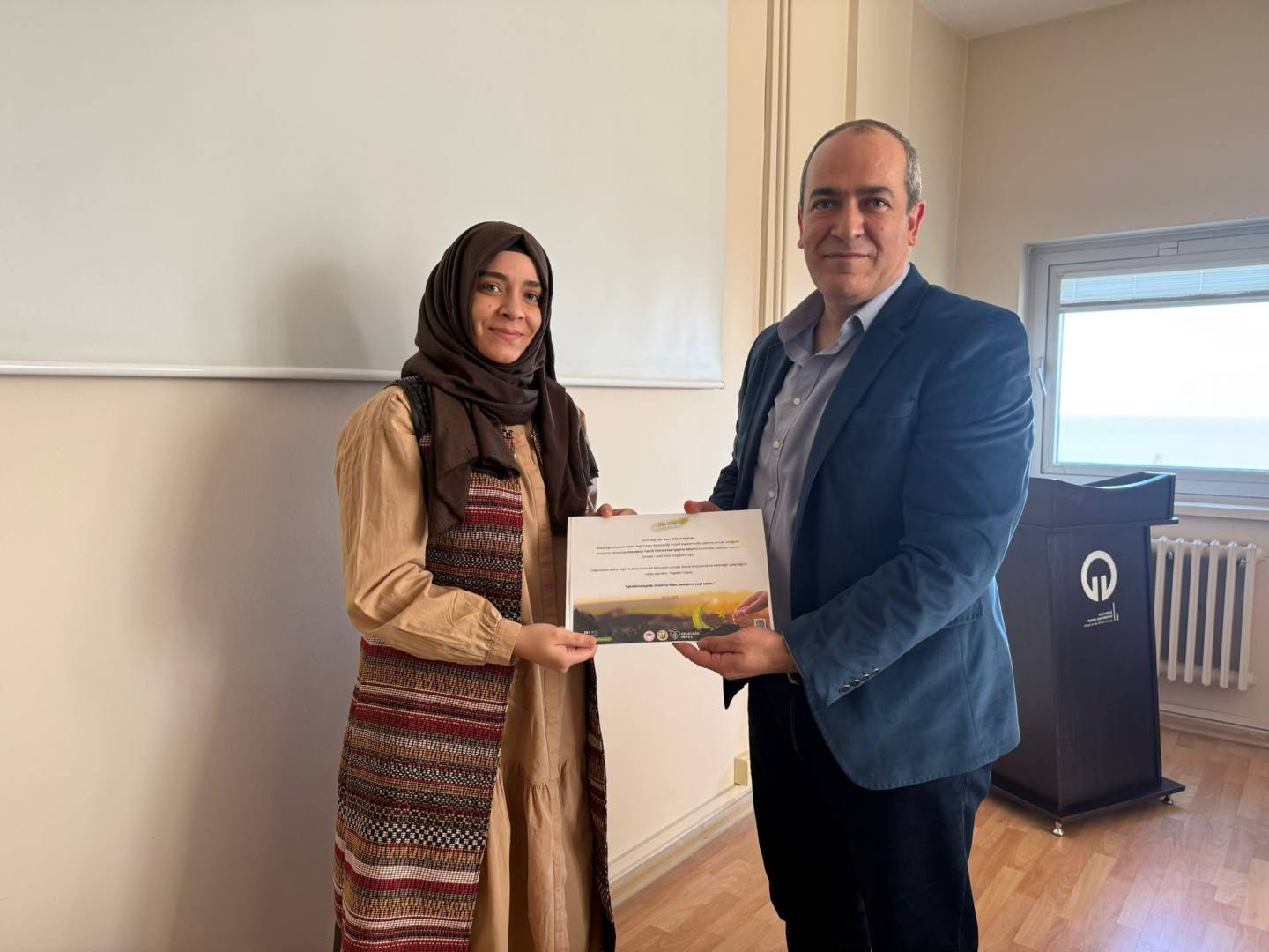 İşletme Bölümü toplantı salonunda gerçekleştirilen tebrik etkinliğinde Bölüm Başkanmız Prof. Dr. Ahmet KURTARAN tarafından fidan bağış sertifikaları personelimize takdim edildi.