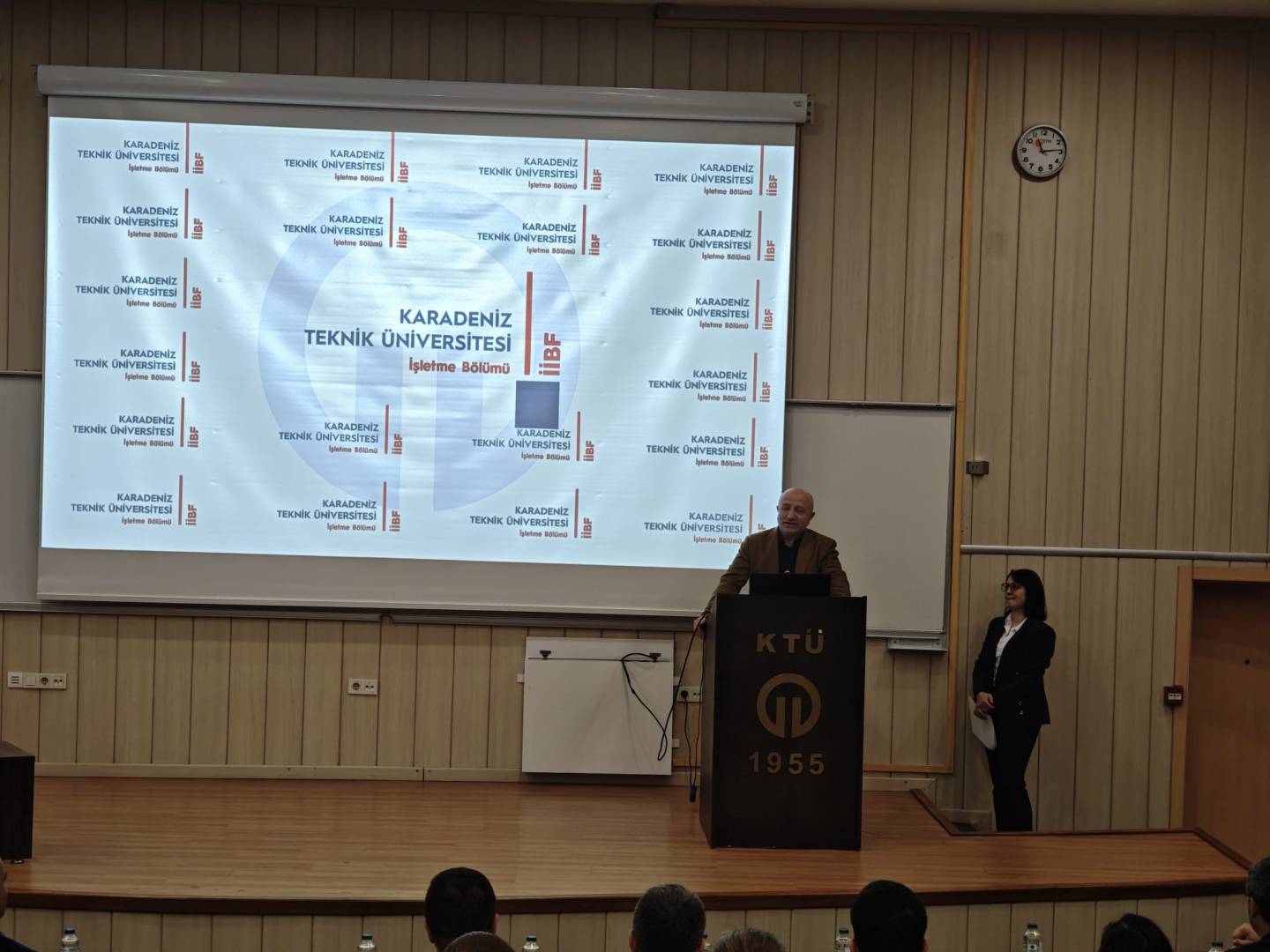 Karadeniz Teknik Üniversitesi İİBF İşletme Bölümü öğretim üyesi Prof. Dr. Mustafa EMİR için Amfi-3'te anlamlı bir veda töreni gerçekleştirilerek emekliliği tebrik edildi.