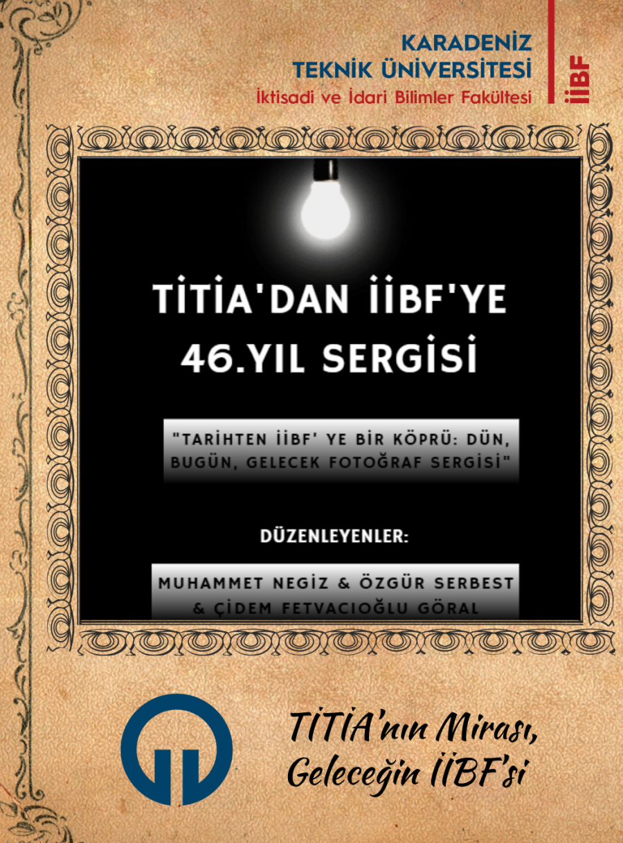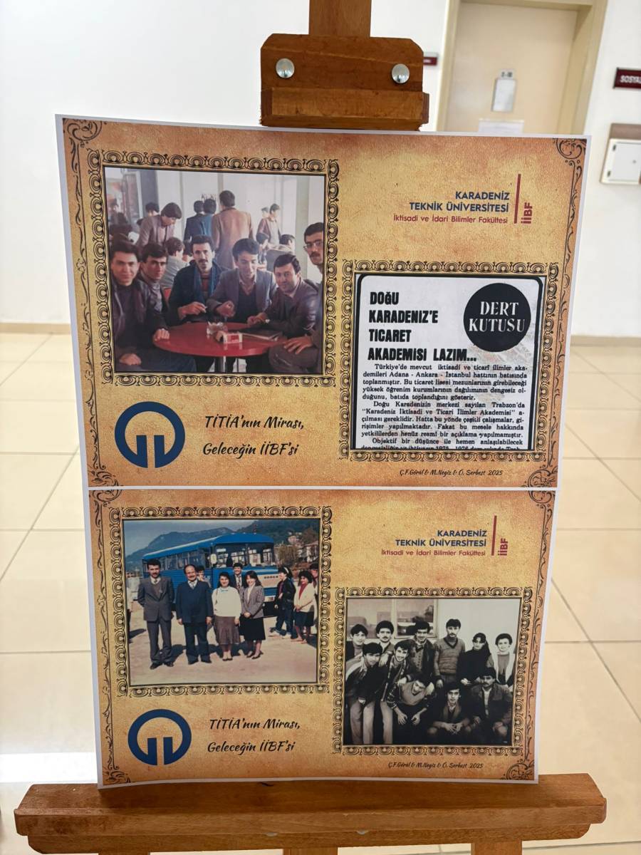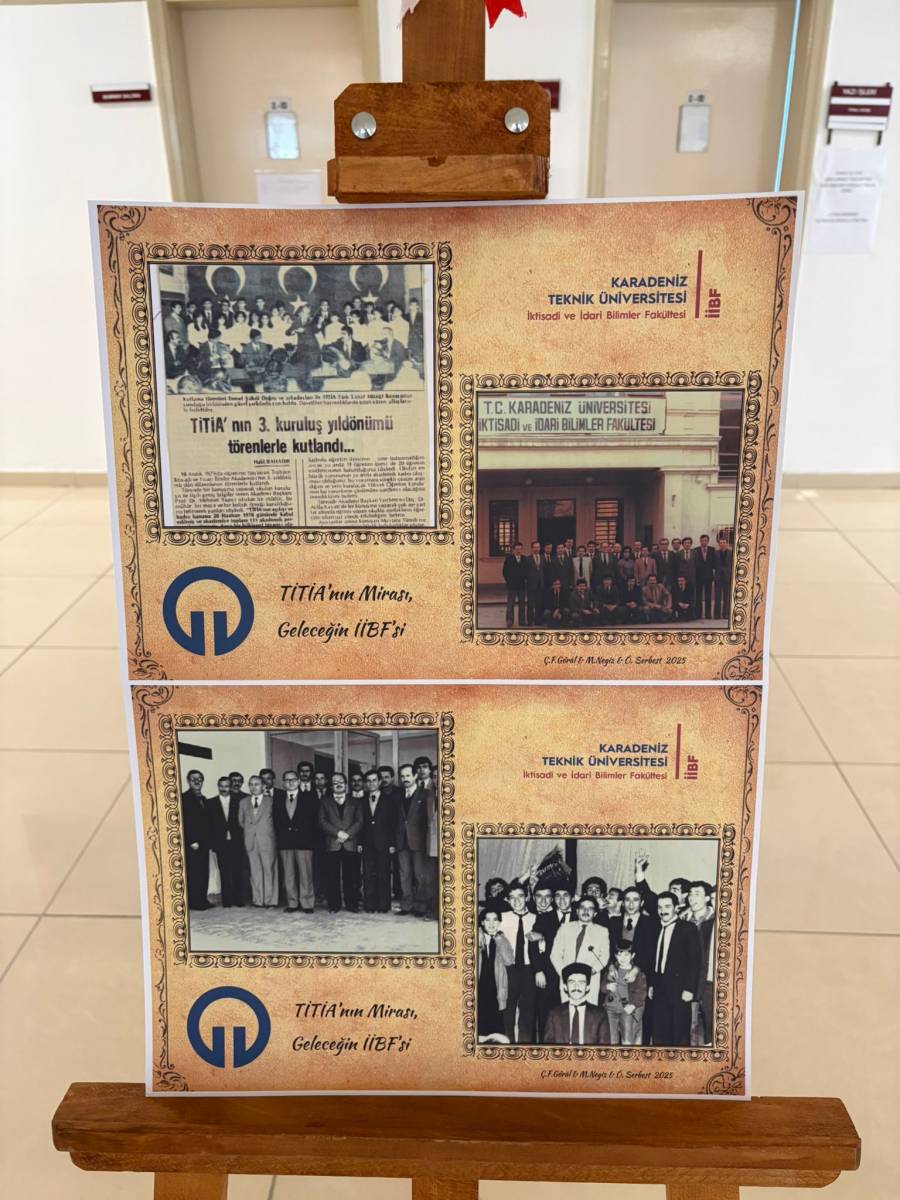 "Tarihten İİBF’ye Bir Köprü: Dün, Bugün, Gelecek Fotoğraf Sergisi" başlıklı sergi Karadeniz Teknik Üniversitesi İİBF İşletme Bölümü Arş. Gör. Muhammet NEGİZ'in ulaştığı belgelerden bir seçki, KTÜ İİBF Bilgi İşlem Sorumlusu Özgür SERBEST'in düzenlemeleri ve KTÜ İktisadi ve İdari Bilimler Fakültesi Sekreteri Çidem FETVACIOĞLU GÖRAL'ın katkılarıyla hazırlandı. KTÜ İktisadi ve İdari Bilimler Fakültesinin kuruluşuna kadar geçen sürede 1978 tarihinde Trabzon İktisadi ve Ticari İlimler Akademisi (TİTİA) çatısı altında faaliyetlerine başlaması ve 12 Eylül 1980 darbesi sonrasında İİBF'ye dönüştürülerek önce Karadeniz Üniversitesi (KÜ) ve sonra Karadeniz Teknik Üniversitesi (KTÜ) bünyesinde faaliyetlerine devam etmesinin hikayesini aktaran sergi, bugün KTÜ Sosyal Bilimler Enstitüsü girişinde ziyarete açıldı. 18 Aralık 2025 tarihinden itibaren de KTÜ İİBF öğrenci girişinde görücüye çıkan sergi, misafirlerini tarihi bir yolculuğa davet ediyor.