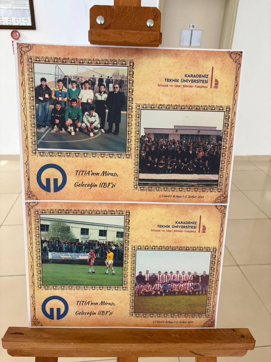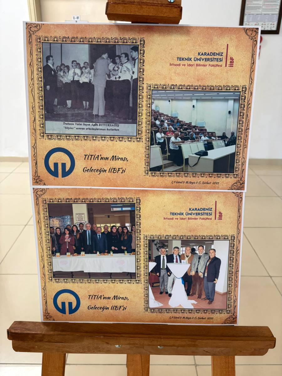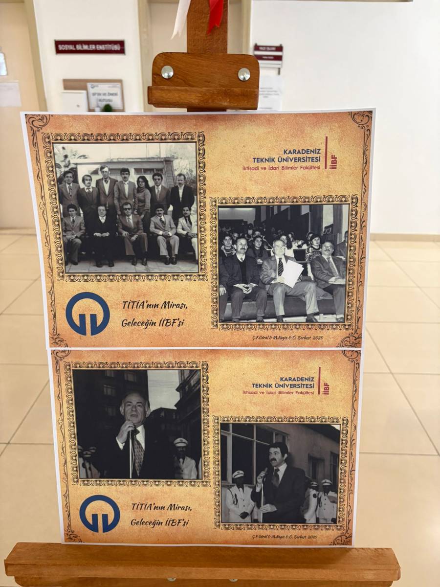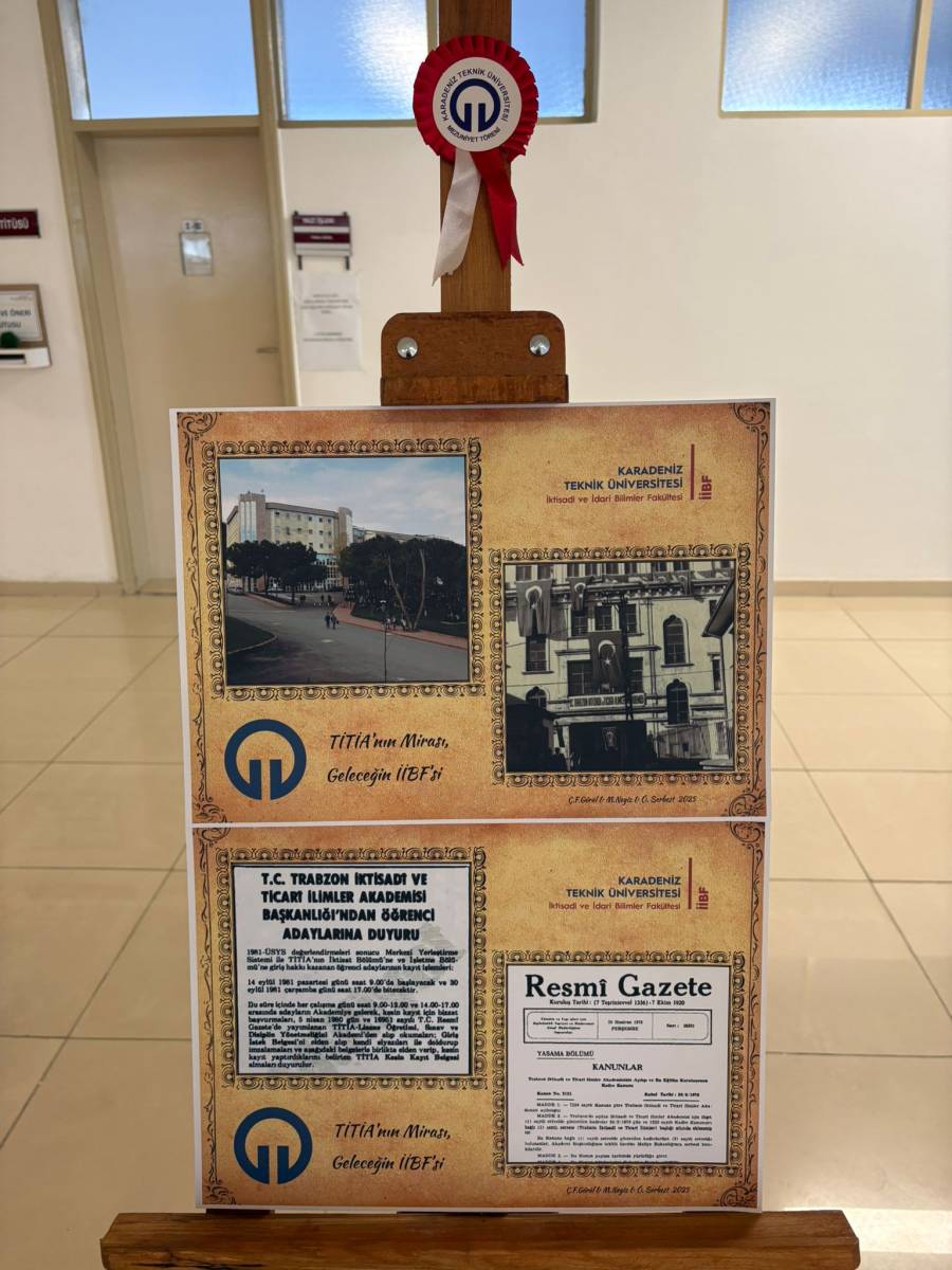 "Tarihten İİBF’ye Bir Köprü: Dün, Bugün, Gelecek Fotoğraf Sergisi" başlıklı sergi Karadeniz Teknik Üniversitesi İİBF İşletme Bölümü Arş. Gör. Muhammet NEGİZ'in ulaştığı belgelerden bir seçki, KTÜ İİBF Bilgi İşlem Sorumlusu Özgür SERBEST'in düzenlemeleri ve KTÜ İktisadi ve İdari Bilimler Fakültesi Sekreteri Çidem FETVACIOĞLU GÖRAL'ın katkılarıyla hazırlandı. KTÜ İktisadi ve İdari Bilimler Fakültesinin kuruluşuna kadar geçen sürede 1978 tarihinde Trabzon İktisadi ve Ticari İlimler Akademisi (TİTİA) çatısı altında faaliyetlerine başlaması ve 12 Eylül 1980 darbesi sonrasında İİBF'ye dönüştürülerek önce Karadeniz Üniversitesi (KÜ) ve sonra Karadeniz Teknik Üniversitesi (KTÜ) bünyesinde faaliyetlerine devam etmesinin hikayesini aktaran sergi, bugün KTÜ Sosyal Bilimler Enstitüsü girişinde ziyarete açıldı. 18 Aralık 2025 tarihinden itibaren de KTÜ İİBF öğrenci girişinde görücüye çıkan sergi, misafirlerini tarihi bir yolculuğa davet ediyor.