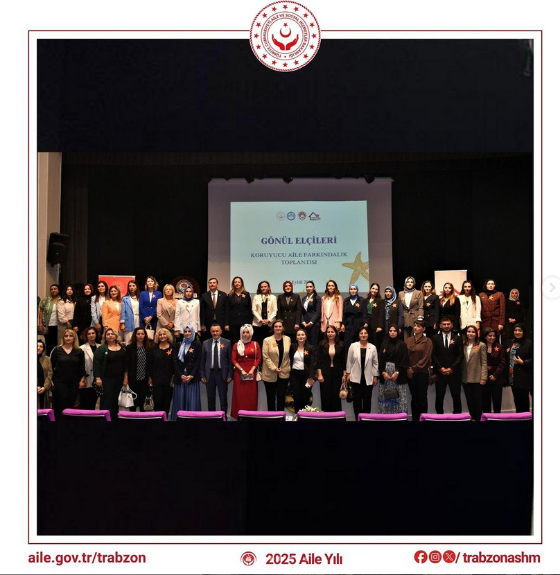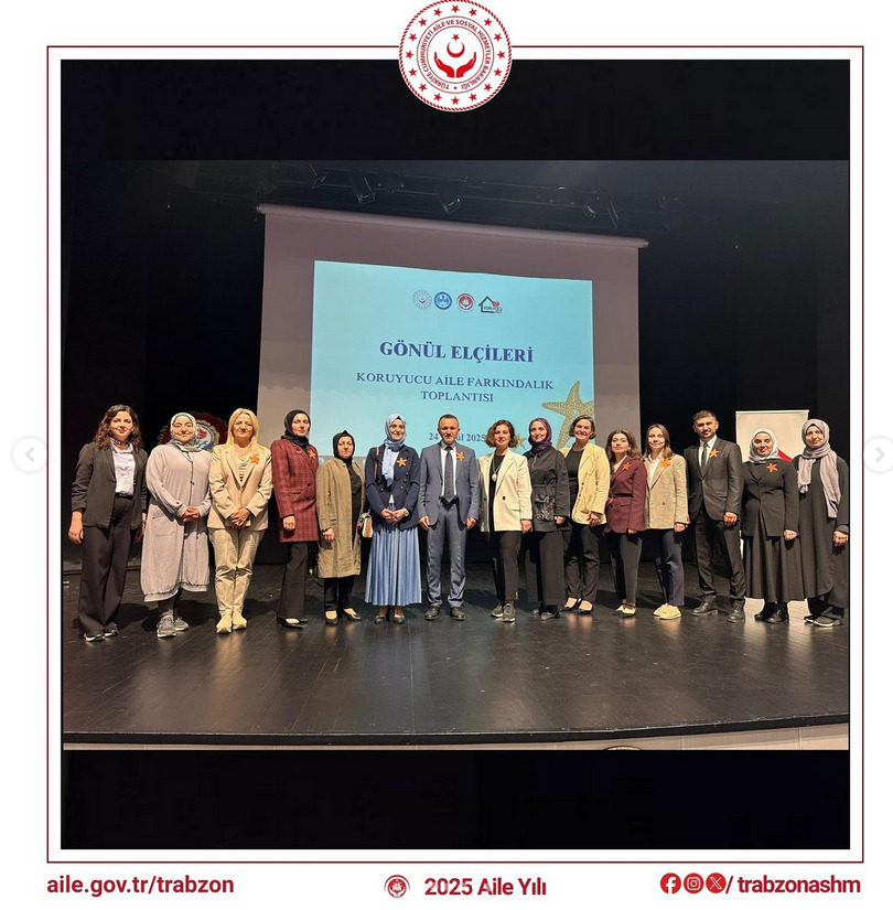 24 Eylül 2025 Çarşamba günü saat 13.30’da Hamamizade İhsan Bey Kültür ve Sanat Merkezinde Trabzon Valisi Aziz Yıldırım’ın kıymetli eşi Güllühan Yıldırım’ın öncülüğünde Trabzon Aile ve sosyal Hizmetler İl Müdürlüğü Koruyucu Aile Birimi tarafından düzenlenen “Gönül Elçileri Sempozyumu”, gerçekleştirildi. Bu toplantıya Üniversitemiz Kadın ve Aile Çalışmaları Uygulama ve Araştırma Merkezi Yönetim Kurulu Üyeleri katılım sağladı. Sempozyum, Psikolog Ümmühan Pehlivan moderatörlüğünde, Psikolog Fadime Kurt ile birlikte iki koruyucu ailemizin konuşmalarını paylaştığı değerli bir etkinlik oldu. Etkinlikte, koruyucu aile hizmetlerinin toplumdaki yeri ve önemi, yaşanmış deneyimler ve psikososyal destek süreçleri ele alındı.
