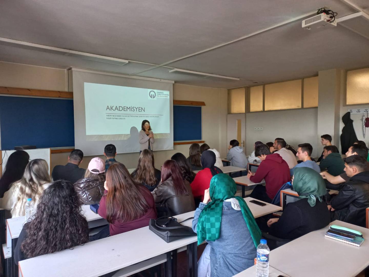 Etkinlik kapsamında Doç. Dr. Nisa Erdem, öğrencilere akademik kariyer süreci, akademisyenlik mesleğinin aşamaları ve akademik hayatta dikkat edilmesi gereken noktalar hakkında kapsamlı bir sunum yaptı.