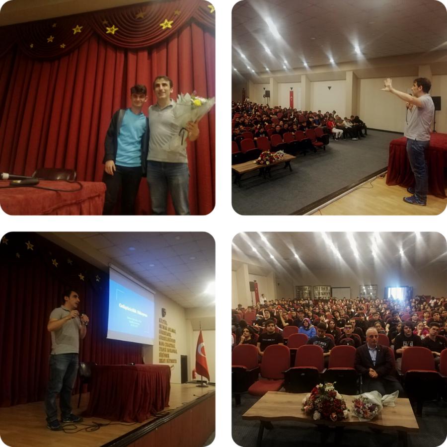 Karadeniz Teknik Üniversitesi Kariyer Geliştirme Uygulama ve Araştırma Merkezi ile Trabzon İl Milli Eğitim Müdürlüğü arasında gerçekleştirilen protokol çerçevesinde; Karadeniz Teknik Üniversitesinde görev yapan akademisyenlerimizden mezun oldukları liselerdeki öğrenciler ile buluşarak kariyer yolculuklarını anlattıkları “Akademik Personelimizden Liselerine Kariyer Yolculuğu” söyleşi programı 31 Mayıs 2023 tarihinde Trabzon Ortahisar Merkez Fen Lisesi Mühendislik Fakültesi Bilgisayar Bölüm Başkan Yrd. Doç. Dr. Sedat GÖRMÜŞ ile devam ediyor. Yoğun bir katılım sağlanan söyleşide, bir geliştirici adayının kariyer planlamasını yaparken dikkat etmesi gereken kriterler ele alındı. Daha sonra önümüzdeki süreçte bilgi teknolojileri alanında ortaya çıkan yeni trendlerin yarattığı fırsatlar ve riskler ele alınarak, söyleşi soru cevap şeklinde sonlandırıldı.