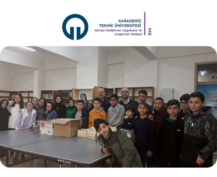 KTÜ Kariyer Geliştirme Uygulama ve Araştırma Merkezi Müdür Yrd. Öğr. Gör. Dr. Zafer YAVUZ 6 Ocak 2023 tarihinde Trabzon Köy Okullarına “Bir Kitap Bir Umut” başlıklı etkinliğimiz kapsamında Akçaabat Sarıtaş İmam Hatip Ortaokulu’nu ziyaret etti. Etkinlik kapsamında toplanan kitaplar Akçaabat Sarıtaş İmam Hatip Ortaokulu kütüphanesinde yerini aldı.