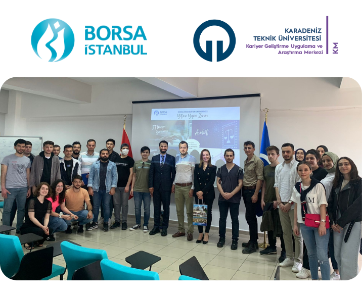 KTÜ Kariyer Geliştirme Uygulama ve Araştırma Merkezi (KM) ile Borsa İstanbul’un düzenlediği “Borsa İstanbul Kariyer Semineri” adlı etkinlik 1 Haziran 2022 tarihinde KTÜ Kariyer Merkezi Seminer Salonu’nda gerçekleştirildi.
