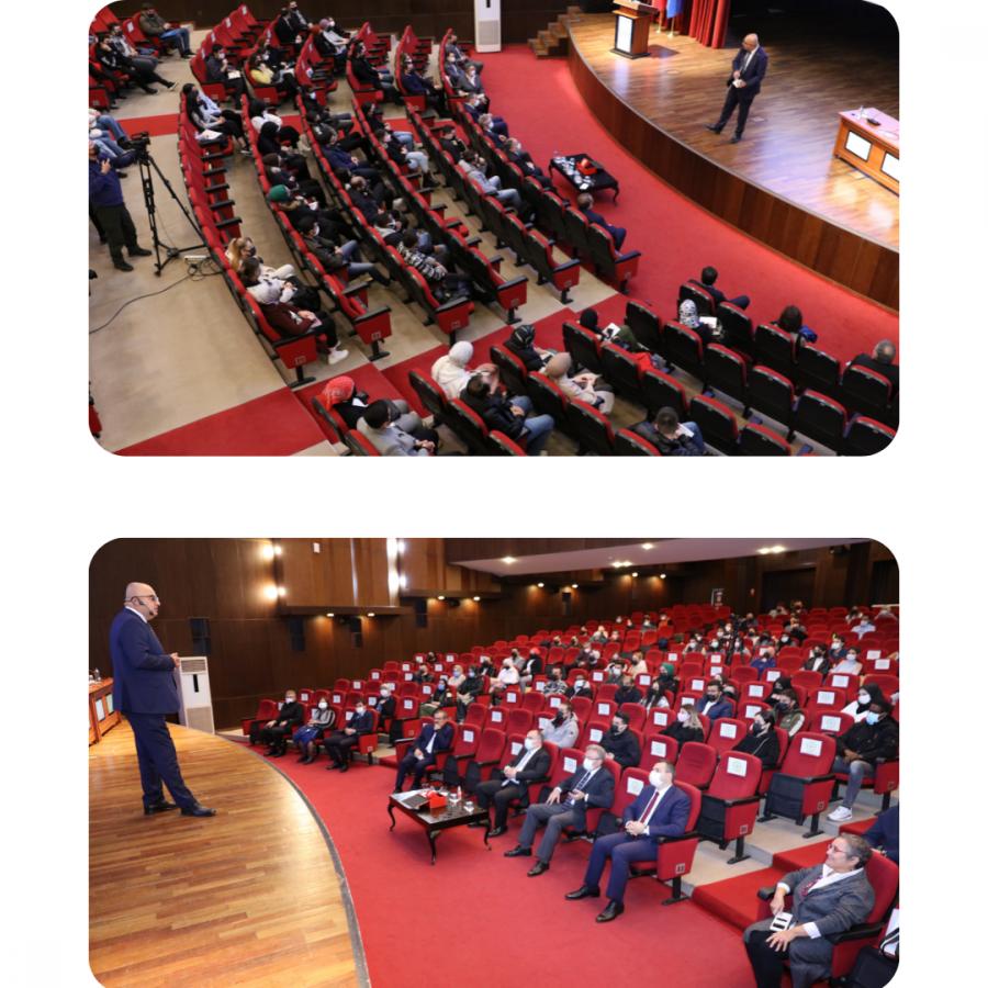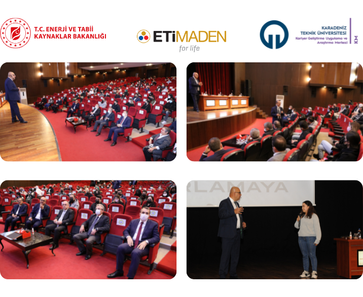 T.C. Enerji ve Tabii Kaynaklar Bakanlığı ve KTÜ Kariyer Geliştirme Uygulama ve Araştırma Merkezi işbirliğiyle, 18 Kasım 2021 saat 14.30’da Prof. Dr. Osman Turan Kültür ve Kongre Merkezi’nde “Borun Geleceğini Tasarlamaktan Bor İle Geleceği Tasarlamaya” başlıklı etkinlik düzenlendi. KTÜ Kariyer Geliştirme Uygulama ve Araştırma Merkezi Müdürü Prof. Dr. Hülya KALAYCIOĞLU’nun moderatörlüğünü üstlendiği etkinlik Enerji ve Tabii Kaynaklar Bakan Yardımcısı Prof. Dr. Şeref KALAYCI, TENMAK BOREN Başkanı Prof. Dr. Abdülkerim YÖRÜKOĞLU ve Eti Maden İşletmeleri Genel Müdürü Serkan KELEŞER’in katılımlarıyla sosyal mesafe, maske ve hijyen kurallarına uygun olarak gerçekleştirildi.