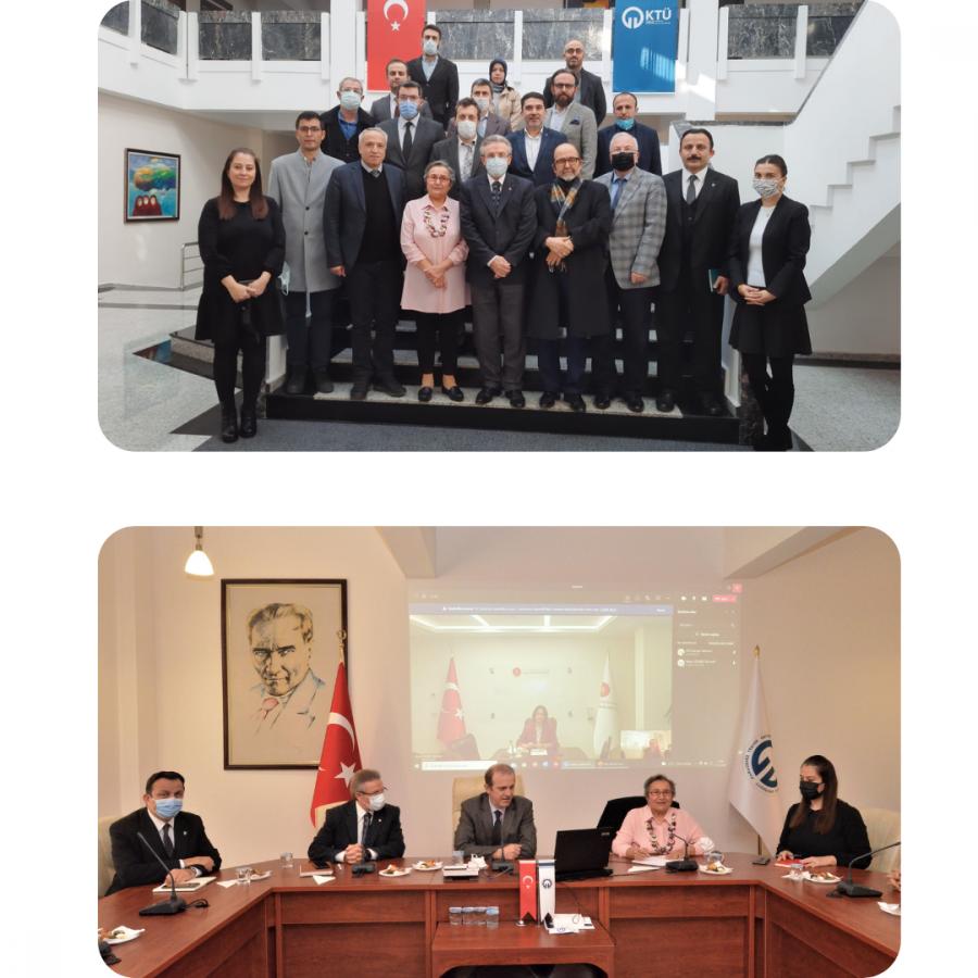 Cumhurbaşkanlığı İnsan Kaynakları Ofisi koordinasyonluğunda ve Karadeniz Teknik Üniversitesi Kariyer Geliştirme Uygulama ve Araştırma Merkezi ev sahipliğinde 4-5 Mart 2022 tarihlerinde Şenol Güneş Spor Kompleksi Medical Park Stadyumu’nda gerçekleştirilecek olan DOKKAF’22 için gerekli çalışmaların yürütülmesi ve sürecin işleyişi hakkında görüşmelerin yapıldığı toplantı 15.12.2021 Çarşamba günü Rektörlük Senato Salonu’nda Rektörümüz Sayın Prof. Dr. Hamdullah ÇUVALCI ve Rektör Yardımcısı Prof. Dr. Halil İbrahim OKUMUŞ’un başkanlığında ve Cumhurbaşkanlığı İnsan Kaynakları Ofisi Yetenek Kazanımı ve Organizasyon Daire Başkanı Neşe GÜLMEZ’in de online olarak katılım sağlamasıyla gerçekleştirilmiştir. Toplantıda Üniversitemiz adına KTÜ Rektörü Prof. Dr. Hamdullah ÇUVALCI ve Prof. Dr. Halil İbrahim OKUMUŞ, Kariyer Geliştirme Uygulama ve Araştırma Merkezi Müdürü Prof. Dr. Hülya KALAYCIOĞLU, Müdür Yrd. Öğr. Gör. Ahmet KÜÇÜK, Müdür Yrd. Öğr. Gör. Setenay ŞEVİK, Müdür Yrd. Öğr. Gör. Dr. Zafer YAVUZ ve Kurumsal İletişim Koordinatörlüğü’nden Öğr. Gör. Yasemin ORHANOĞLU olmak üzere paydaş üniversitelerden Artvin Çoruh Üniversitesi Rektör Yard. Prof. Dr. Murat KİBAR, Kariyer Merkezi Müdür Yrd. Arş. Gör. Ali KAYA, Avrasya Üniversitesi Rektör Yrd. Prof. Dr. Ersan BOCUTOĞLU, Kariyer Merkezi Müdürü Öğr. Gör. Handan ERDOĞAN, Bayburt Üniversitesi Rektör Yrd. Prof. Dr. Metin UÇURUM, Kariyer Merkezi Müdürü Doç. Dr. Adnan KARA, Giresun Üniversitesi Rektör Yrd. Prof. Dr. Hüseyin PEKER, Kariyer Merkezi Müdürü Öğr. Gör. Oktay Orçun BEKEN, Gümüşhane Üniversitesi Rektör Yrd. Prof. Dr. Günay ÇAKIR, Kariyer Merkezi Müdürü Dr. Öğr. Üyesi Ali ÖZCAN, Recep Tayyip Erdoğan Üniversitesi Rektör Yrd. Prof. Dr. Ahmet İshak DEMİR, Kariyer Merkezi Müdürü Öğr. Gör. Ahmet MİDİLLİ ve Trabzon Üniversitesi Rektör Yrd. Prof. Dr. Hüseyin SERENCAM, Kariyer Merkezi Müdürü Doç. Dr. Emre Ş. ASLAN’ın katılımlarıyla karşılıklı fikir alışverişleri yapıldı ve toplantı gelen misafirlerin KTÜ Sahil Tesisleri’nde öğle yemeği ile ağırlanmalarıyla sonlandırıldı.