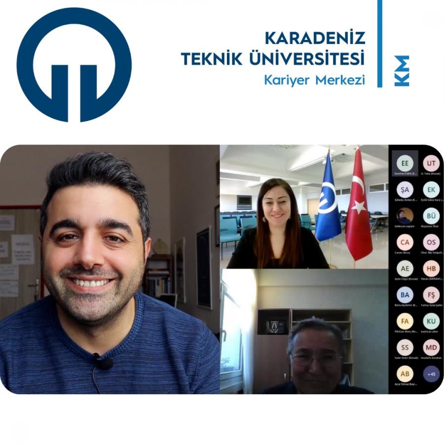 KTÜ Kariyer Merkezi tarafından düzenlenen “Dünden Geleceğe Uzay Çalışmaları” semineri 22 Ekim 2021 tarihinde online olarak gerçekleştirildi. Kariyer Merkezi Koord. Prof. Dr. Hülya KALAYCIOĞLU’nun katılımı ve Kariyer Merkezi Koord. Yard. Öğr. Gör. Setenay ŞEVİK’in moderatörlüğünde, Astrofizikçi Dr. Öğr. Üyesi Selçuk TOPAL’ın sunumuyla gerçekleştirilen seminere akademisyen, üniversite öğrencisi ve lise öğrencilerinden oluşan 165 kişi katılım sağladı.