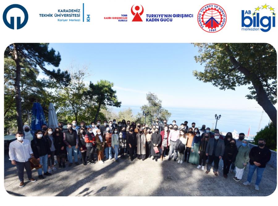KTÜ'deki öğrenci kulüplerinin başkan ve temsilcilerinin katıldığı etkinlikte konuşan TOBB Kadın Girişimciler Üst Kurul Üyesi, TOBB Trabzon İl Kadın Girişimciler İcra Kurulu Başkanı Zühal AKYÜZLÜ, gençlerle deneyim paylaşımında bulunarak TOBB; TOBB Kadın Girişimciler Kurulu, ticaret ve sanayi odalarının çalışma biçimleri hakkında bilgilendirme yaptı. AKYÜZLÜ, girişimci olmak isteyen gençlere birçok destek verildiğini anımsatarak, "Özellikle TOBB, kadın girişimcilerin daha fazla öne çıkması bağlamında her zaman sizlerin yanında olacaktır" dedi. AKYÜZLÜ, Avrupa Birliği'nin girişimcilik ve girişimcilikte toplumsal cinsiyet eşitliğine önem verdiğini de kaydederek gençlerin Avrupa Birliği programlarına karşı daha ilgili olmalarını da önerdi. AKYÜZLÜ'nün konuşmasının ardından TTSO Trabzon AB Bilgi Merkezi Koordinatörü Yakup KARBUZ da söz alarak AB Bilgi Merkezi hakkında açıklamalarda bulundu. KARBUZ gençlerle sürekli çalıştıklarını önümüzdeki süreçte bu çalışmalarını daha da artıracaklarını vurguladı. Trabzon Kadın Girişimciler Kurulu üyeleri Seyyare SUNGUR ve Elif ÇAKIROĞLU da girişimcilik tecrübelerini katılımcılarla paylaştı. KTÜ Kariyer Merkezi Kariyer Danışmanı Öğr. Gör. Ahmet KÜÇÜK böyle bir etkinliğin düzenlenmesinde emeği geçen kişilere ve katılımcılara teşekkür ederek, KTÜ ile şehri ve iş dünyasını birleştirecek olan ve öğrencilere katkı sağlayacak olan her organizasyonda bulunmak istediklerini, her zaman işbirliğine açık olduklarını ifade etti.