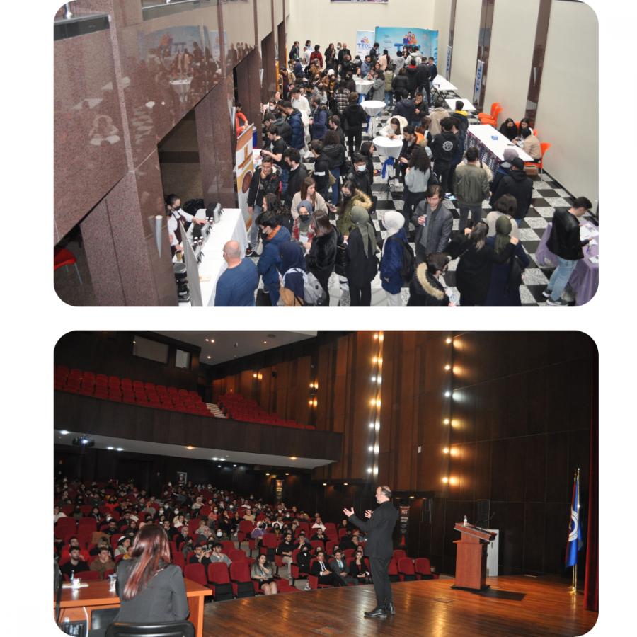 12. Kariyer Gelişim Günleri açılış konuşmasında Karadeniz Teknik Üniversitesi Rektör Yrd. Prof. Dr. Halil İbrahim OKUMUŞ, KGG hakkında bilgilendirme yaparak üst düzey yöneticiler ile öğrencileri buluşturmayı ve öğrencilerin edindikleri kazanımlarla kariyerlerine yön vermelerine yardımcı olmayı hedeflediklerinden bahsetti. 22-23 Mart tarihlerinde gerçekleşen etkinliğimizde, Mondelez International Kategori Planlama & Aktivasyon ve Satış Operasyonları Lideri Murat KAYA, LevelUp CEO’su Onur YILMAZ, Renault Group Veri ve Dijital Dönüşüm Departman Müdürü Mahmut ŞENALTUN, PayTR CEO’su Tarık TOMBUL, Anadolu Efes Geleneksel Kanal Bölge Müdürü Baran BALKAŞ, Türkiye Ödeme ve Elektronik Para Kuruluşları Birliği (TÖDEB) Yönetim Kurulu Başkan Vekili Ufuk BİLGETEKİN, LC Waikiki İşe Alım Uzmanları Gülcan GENÇ, Yavuz YAVUZER ve İşe Alım Uzman Yrd. Aycan ALCAN, Vakıfbank Doğu Anadolu Bölge Müdürü Engin ÖZCAN ve Doğu Anadolu Bölge Krediler Müdürü Sabit KURTULUŞ , TEOL Dil Okulları & Yurtdışı Eğitim Trabzon Şubeler Müdürü Bünyamin DÜLGER ve Türk Telekom Teknik Operasyonlar Bölge Müdür Yrd. Metin UZUN sunumlarını gerçekleştirdiler. Her sunumun sonunda sunum yapan katılımcılarımıza plaket ve içerisinde Trabzon’u temsil eden hediye takdim edildi. Etkinliklere katılan öğrenciler için çekiliş gerçekleştirildi. Çekiliş sonucunda 35 öğrencimize hediyelerinin verilmesiyle 12. Kariyer Gelişim Günleri etkinliğimiz sona erdi.