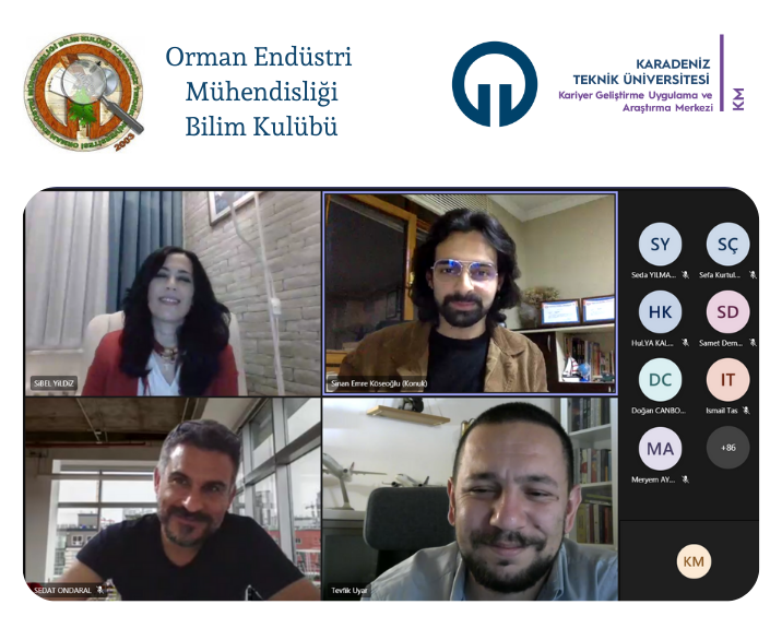 KTÜ Kariyer Geliştirme Uygulama ve Araştırma Merkezi ve KTÜ Orman Endüstri Mühendisliği Bilim Kulübü ortaklığıyla düzenlenen “İnsan Faktörü” başlıklı etkinliğimiz 6 Aralık 2021 tarihinde online olarak gerçekleştirildi. KTÜ Orman Endüstri Mühendisliği Bilim Kulübü Başkanı Sinan Emre KÖSEOĞLU moderatörlüğünde Tevfik UYAR’ın sunumuyla gerçekleştirilen etkinliğimize çeşitli üniversitelerden akademisyen ve öğrencilerden oluşan 76 kişi katılım sağladı.