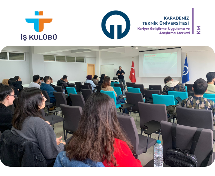 KTÜ Kariyer Geliştirme Uygulama ve Araştırma Merkezi (KM) ile İş Kulübün’ün düzenlediği “Etkili Özgeçmiş Hazırlama, Kendini Tanıma ve İş Arama Kanalları” başlıklı etkinlik 3 Kasım 2022 tarihinde KM seminer salonunda gerçekleştirildi.