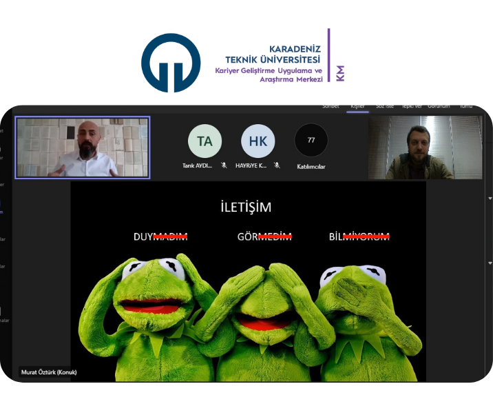 KTÜ Kariyer Geliştirme Uygulama ve Araştırma Merkezinin düzenlediği " Kariyerin 3 Atlısı" etkinliği 16 Mart 2023 tarihinde online olarak gerçekleştirildi. Etkinlikte Profesyonel Koç - Eğitmen Murat Öztürk Kariyerin 3 atlısı kavramının nereden geldiğini ve bu 3 kavramın kariyer noktasındaki başarı ve ilerlemeyi ne yönde etkilediğini anlattı. Kariyer hayatındaki önemli noktaları ve dikkat edilmesi gereken davranışların üstünde durdu. Etkinliğin devamında "Koç- Mentörlük " kavramının kariyer ilerlemesindeki etkisinden bahsetti. Etkinlik katılımcılardan gelen soruların cevaplandırılmasıyla sonlandırıldı.