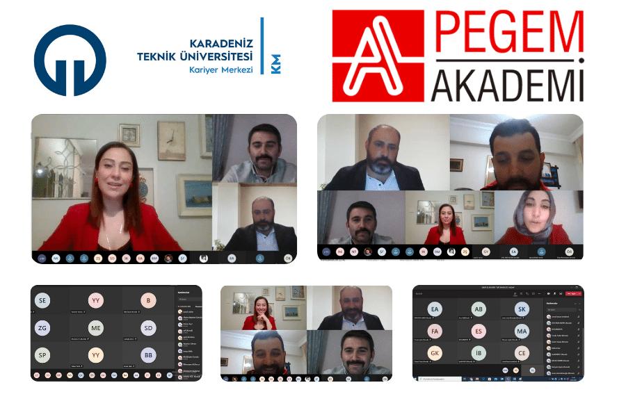 PEGEM AKADEMİ ile KTÜ Kariyer Merkezi tarafından düzenlenen “KPSS Hakkında Herşey” semineri 19 Mart 2021 tarihinde, Kariyer Danışmanımız Öğr. Gör. Setenay ŞEVİK’in moderatörlüğünde, PEGEM AKADEMİ Kurucu Müdürü Fatih AYDIN, Doç. Dr. Sercan EROL ve Uzman Nezihe HATUN’un sunumuyla online olarak gerçekleştirildi.