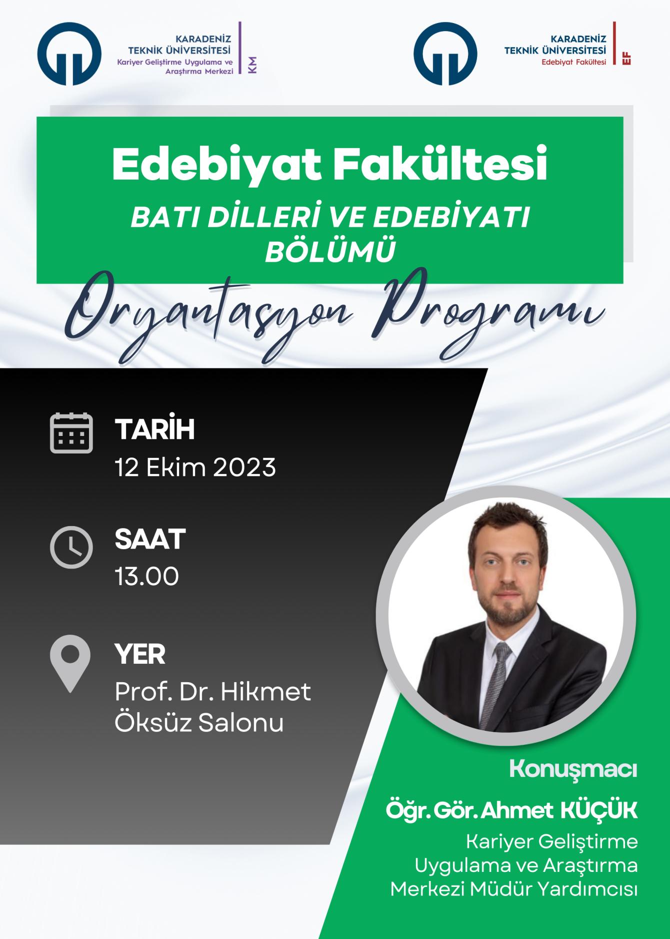 KTÜ Edebiyat Fakültesi Batı Dilleri ve Edebiyatı Bölümü Oryantasyon Programı