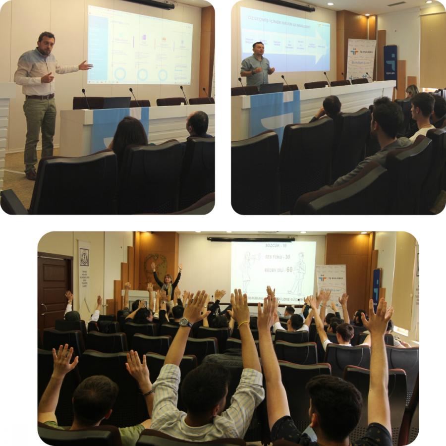 KTÜ Kariyer Geliştirme Uygulama ve Araştırma Merkezi (KM) ile TMMOB Makine Mühendisler Odası Trabzon Şubesi ve İş Kulübü’nün düzenlediği “İş Arama Becerileri” konulu etkinlik 31 Mayıs 2 haziran 2022 tarihlerinde gerçekleştirildi. 31 Mayıs 2022 tarihinde TMMOB Makine Mühendisler Odası Trabzon Şubesi Seminer Salonu’nda gerçekleştirilen etkinlikte KM Müdür Yrd. Öğr. Gör. Ahmet KÜÇÜK, KM’nin öğrencilere sağlamış olduğu kariyer gelişim fırsatlarını, eğitimleri ve kariyer danışmanlığını anlattı. İş Kulübü Lideri İş ve Meslek Danışmanı Emel ŞAHİNLER “Etkili Özgeçmiş Hazırlama Teknikleri” hakkında bilgi verdi. İş Kulübü Lideri İş ve Meslek Danışmanı Barış KANDİL “Etkili Sunum Teknikleri ve İmaj Yönetimi” hakkında bilgiler verdi. 2 Haziran 2022 tarihinde KTÜ KM Seminer Salonu’nda katılımcılar İş Kulübü Lideri İş ve Meslek Danışmanı Barış KANDİL ve İş Kulübü Lideri İş ve Meslek Danışmanı Emel ŞAHİNLER tarafından mülakat teknikleri ve simülasyonu eğitimine alındı. Etkinlik öğrencilerin soruları cevaplandırılarak sonlandı.