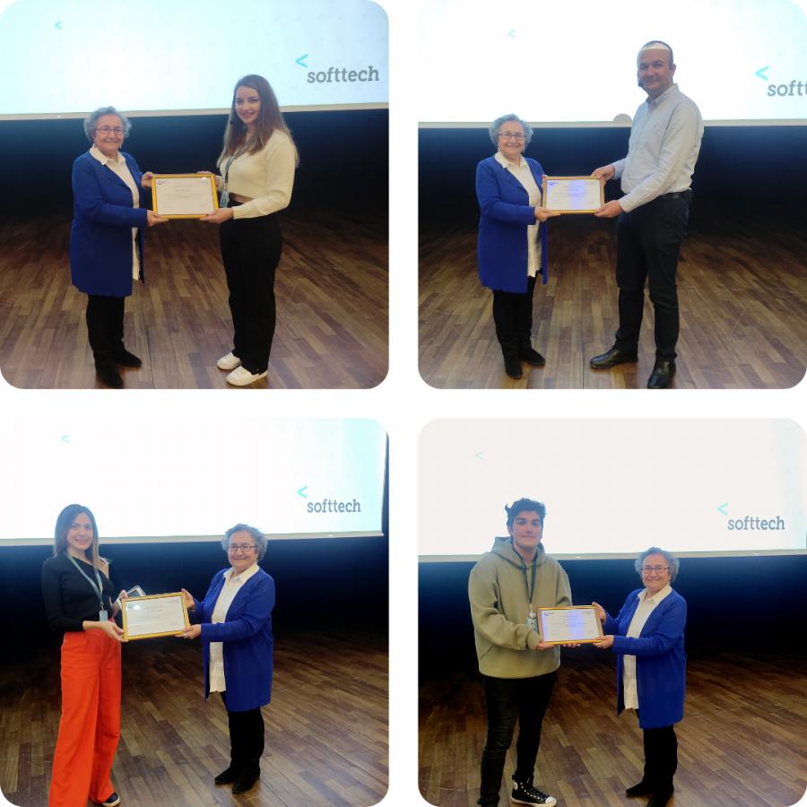 Softtech İnsan Kaynakları Uzmanı İlayda ÖZBEY Softtech’in vizyon ve misyonu dahilinde izledikleri yolu ve işe alım süreçlerinde öğrencilerimizi nasıl bir geleceğin beklediğini anlattı. “Yetenek Kuşağı” projelerinde “Gelecek Sensin” sloganıyla mezun olan genç yeteneklerin Softtech’te tam zamanlı çalışma fırsatı elde edebilecekleri, kodlama ve yazılım geliştirme üzerine odaklanan yetenek programının detaylarını öğrencilerimizle paylaştı. Ardından Softtech Çevik Atölye Grup Yöneticisi Okan BEŞLİ İş Bankası’nın dijital dönüşümüyle başlayan iş yazılım süreçleri hakkında bilgi verdi ve Softtech ekibi tarafından geliştirilen yeni yazılımların tanımını ve kapmasını öğrencilere aktardı. Sunum sonunda KM Müdürü Prof. Dr. Hülya KALAYCIOĞLU tarafından Softtech temsilcilerine Teşekkür Belgesi takdim edildi. Etkinlik Softtech İnsan Kaynakları Ekibi’nin katılımcılarla Mülakat Simülasyonu gerçekleştirmesiyle son buldu.
