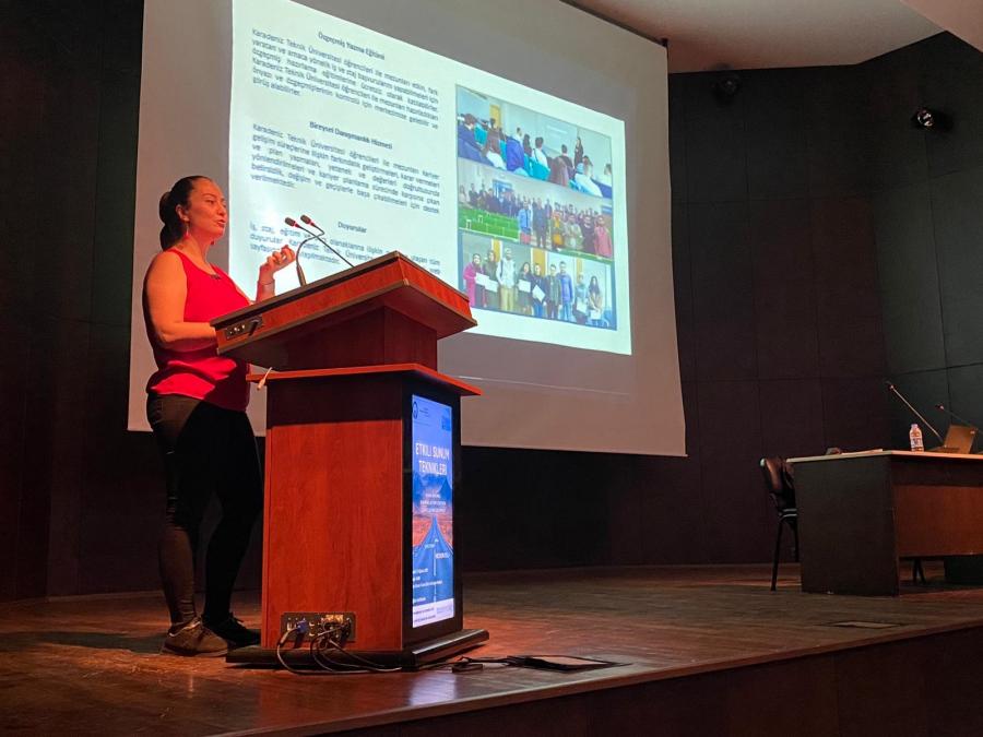 T.C. Cumhurbaşkanlığı İnsan Kaynakları Ofisi “Staj Seferbirliği Programı” Kapsamında KTÜ Kariyer Merkezi tarafından düzenlenen “CV Hazırlama Teknikleri” eğitimi Kariyer Merkezi Stajyeri KTÜ öğrencisi Zeynep KÜÇÜK BAYRAK moderatörlüğünde ve Kariyer Merkezi Müdür Yardımcısı. Öğr. Gör. Setenay ŞEVİK'in sunumuyla 27 Ağustos 2021 tarihinde Osman Turan Kültür ve Kongre Merkezi’nde sosyal mesafe ve hijyen kurallarına uygun bir şekilde gerçekleştirildi.
