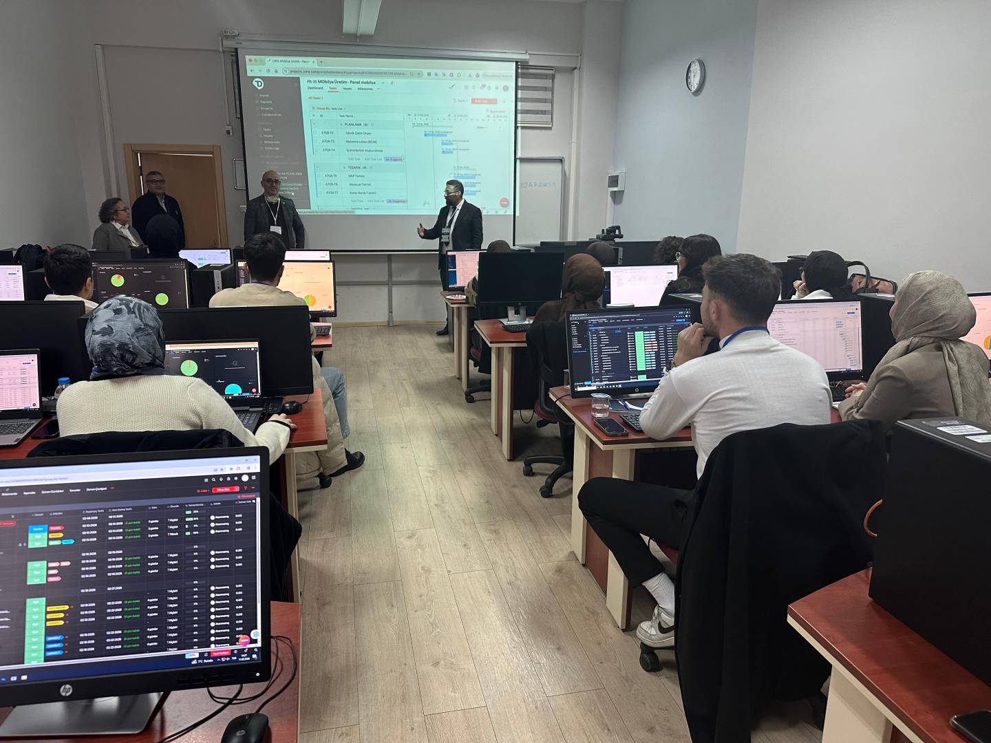 Orman Endüstri Mühendisliği 3. ve 4. sınıf öğrencilerine yönelik olarak düzenlenen eğitim programı süresince katılımcıların proje planlama, iş programı oluşturma, zaman ve kaynak yönetimi gibi alanlarda teorik ve uygulamalı yetkinlik kazanmaları hedeflenmiştir. Eğitimlerde dijital proje yönetim araçlarının etkin kullanımına yönelik kapsamlı içerikler sunulmuş; sektörel örnekler üzerinden yürütülen uygulamalarla öğrencilerin mesleki yaşamlarında ihtiyaç duyacakları proje yönetimi ve iş planlama becerilerini geliştirmeleri sağlanmıştır.