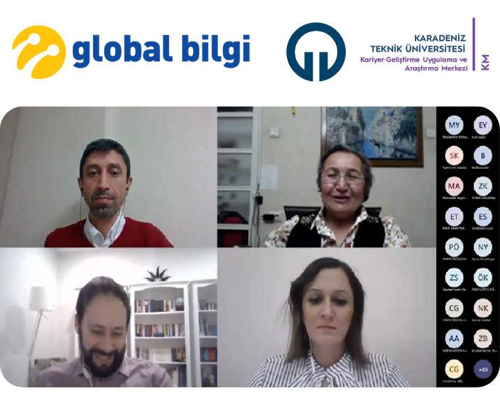 KTÜ Kariyer Geliştirme Uygulama ve Araştırma Merkezi ile Turkcell Global Bilgi’nin düzenlediği “ Üniversite Hayatında Kariyer Gelişimi - Teknolojik Uygulamalar ve Ekip Çalışmaları” eğitimleri 11 Nisan 2023 tarihinde Prof. Dr. Hülya KALAYCIOĞLU moderatörlüğünde online olarak gerçekleştirildi.