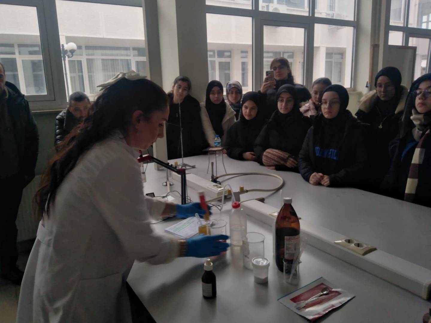 Ziyaretin en dikkat çekici bölümlerinden biri, laboratuvarlarda gerçekleştirilen uygulamalı etkinlikler oldu. Çeşitli deneyler yapılarak teorik bilginin pratiğe nasıl dönüştüğü gösterildi. Bu süreçte misafir öğrenciler, deneylere aktif olarak katılarak bilimsel çalışmaları yakından gözlemleme ve sorularını doğrudan uzmanlara yöneltme imkânı buldu.