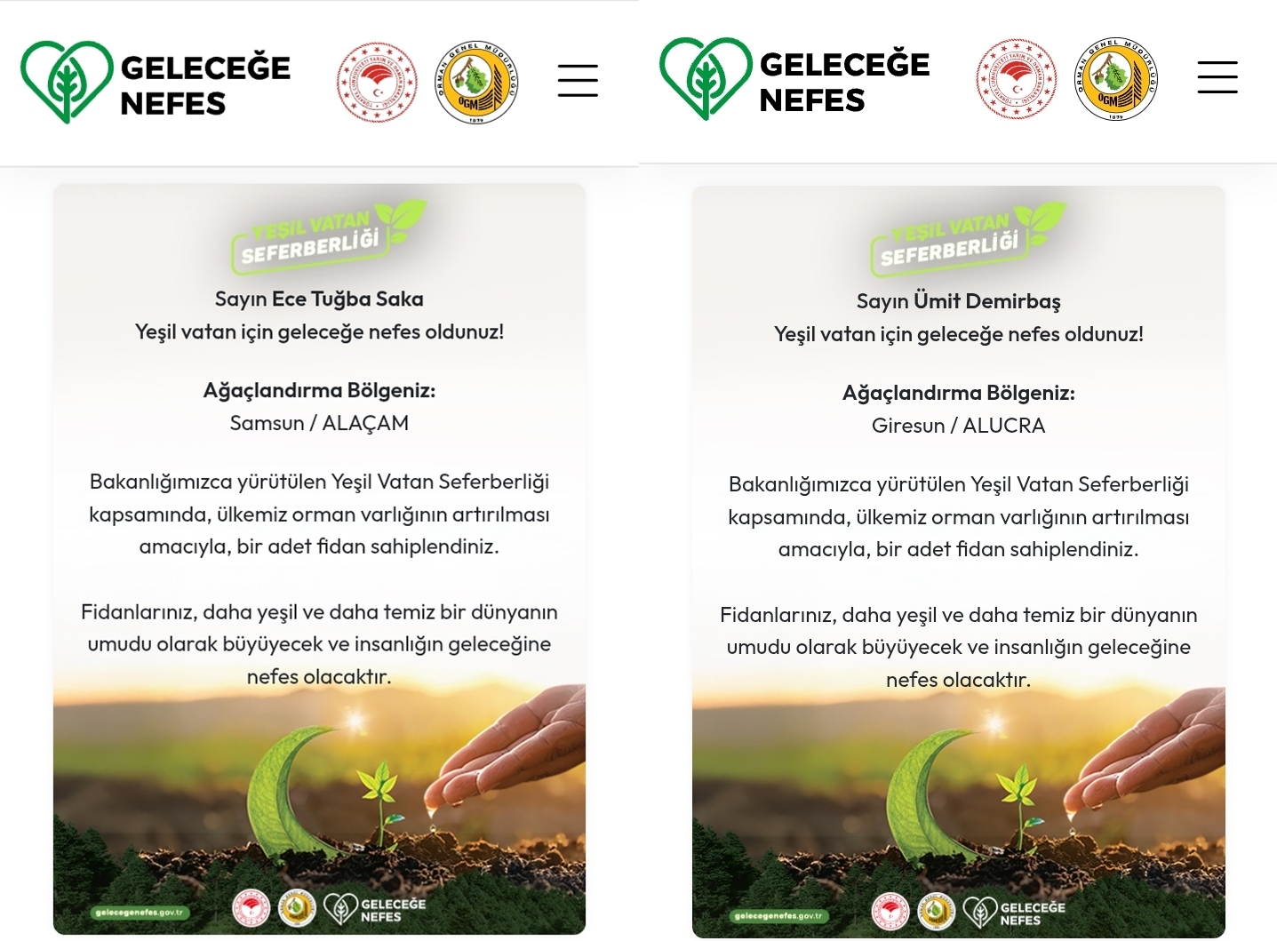 Gerçekleştirdiğimiz fidan bağışına ilave olarak, başka fidanlar sahiplenerek her birine isim verdik. Bu uygulama ile doğayla kurulan bağın güçlendirilmesi, çevre bilincinin kalıcı hale getirilmesi ve gelecek nesillere daha yaşanabilir bir çevre bırakılmasını amaçladık.