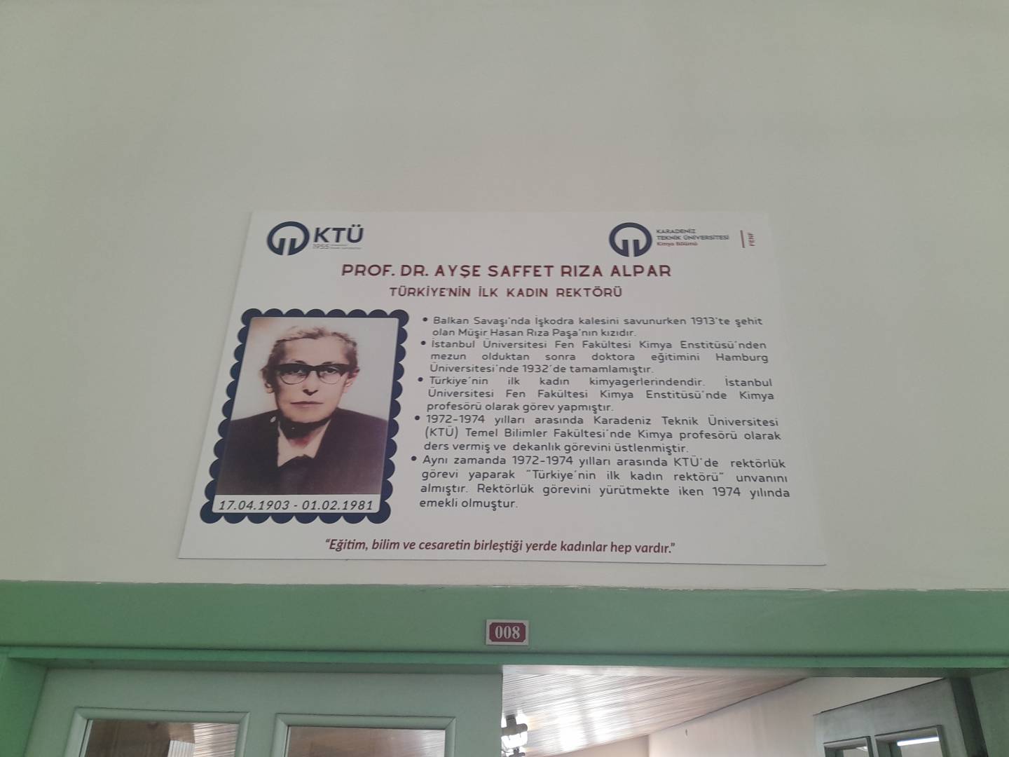 Akademik personelimizden 15.10.2025 tarihinde gelen yazılı geri bildirimin değerlendirilmesi sonucunda 04.11.2025 tarihinde, bölümümüz B Blok giriş katta bulunan SRA amfisinin girişine yeni bir tanıtıcı afiş asılmıştır. "Alınan geri bildirimler sonucunda gerçekleştirilen iyileştirme sayısı" kapsamındaki bu tadilat ile amfiye adını veren Prof. Dr. Ayşe Saffet Rıza Alpar'ın kısa biyografisi amfi girişine afiş olarak asılmıştır.