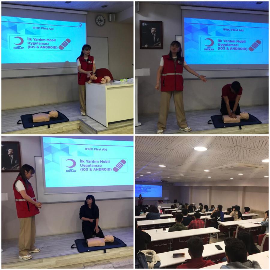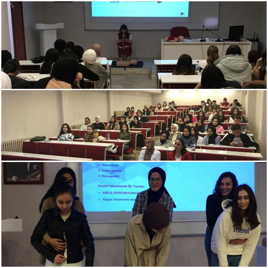 Türk Kızılay Trabzon Şubesi, İlk Yardım Eğitim Merkezi eğitmenlerinden Derya YILMAZ tarafından, 25.05.2022 tarihinde öğrencilerimize, Yüksekokulumuz Prof. Dr. Mehmet TÜFEKÇİ Konferans Salonunda İlk Yardım dersi kapsamında eğitim verilmiştir.