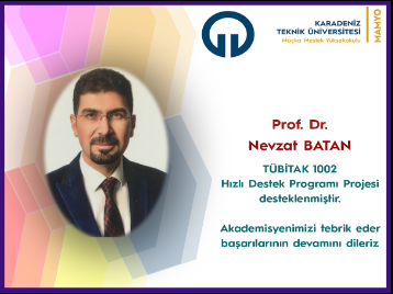 Maçka MYO, Kimya ve Kimyasal İşleme Tek. Bölümü Öğretim Üyesi, Prof. Dr. Nevzat BATAN'ın projesi, "TÜBİTAK 1001 Bilimsel ve Teknolojik Araştırma Projelerini Destekleme Programı...
