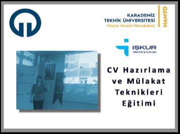 İşkur Trabzon İş Kulübü eğitmenleri Emel Şahinler ve Barış Kandil tarafından yüksekokul 2.sınıf öğrencilerimize CV Hazirlama ve Mülakat Teknikleri konularında eğitim düzenlenmiştir