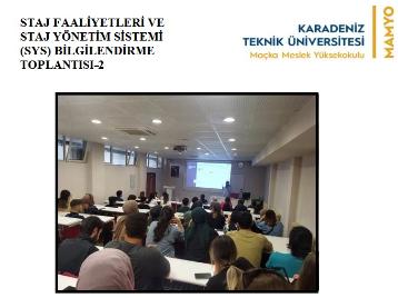 Staj Faaliyetleri ve Staj Yönetim Sistemi (SYS) Bilgilendirme Toplantısının ikincisi 3 farklı oturumda Prof. Dr. Mehmet Tüfekçi Konferans Salonunda gerçekleştirildi