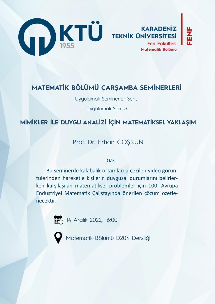 Çarşamba Seminerleri: Uygulamalı-Sem-3: Mimikler ile Duygu Analizi İçin Matematiksel Yaklaşım