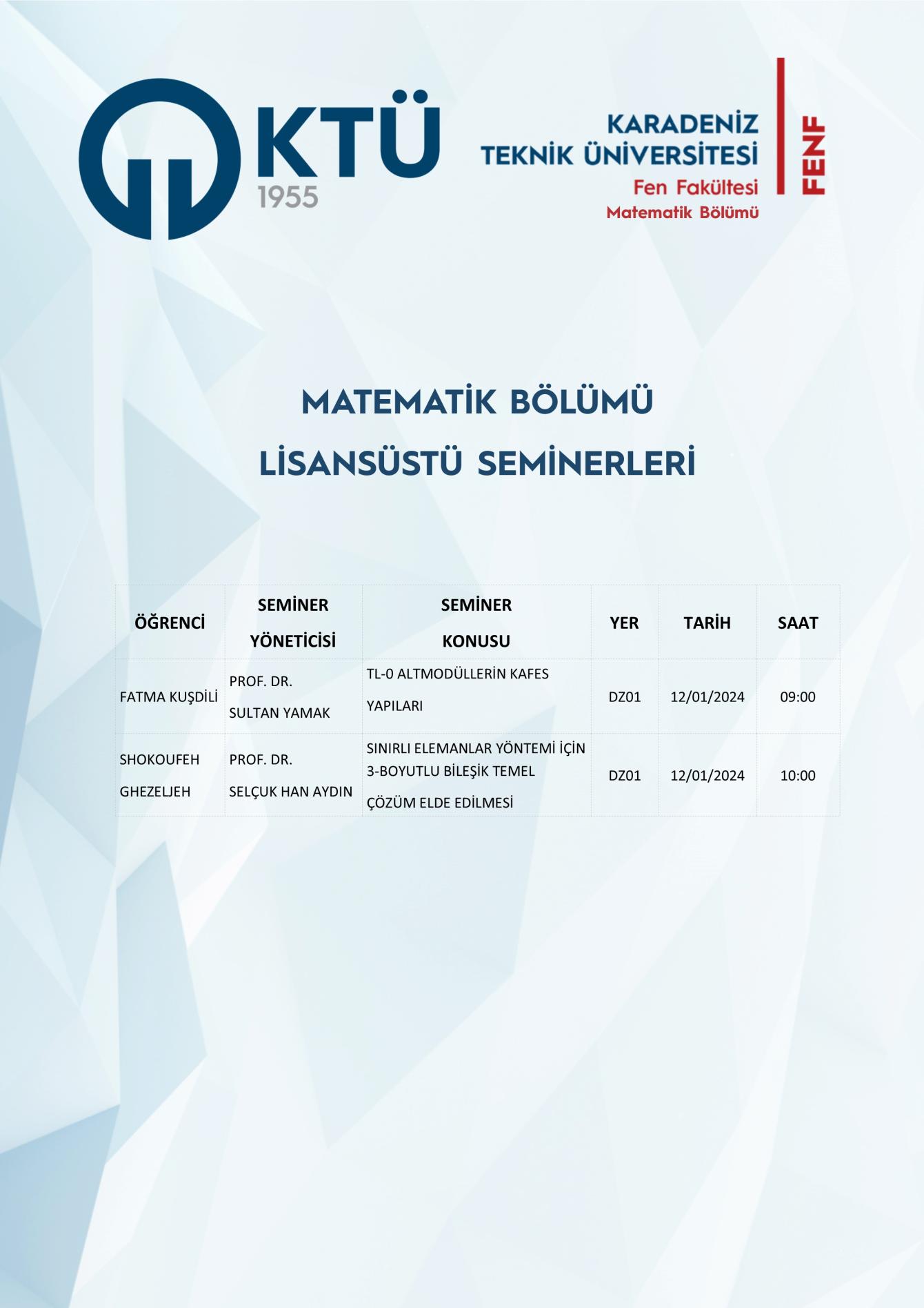 Matematik Bölümü Lisansüstü Seminerleri