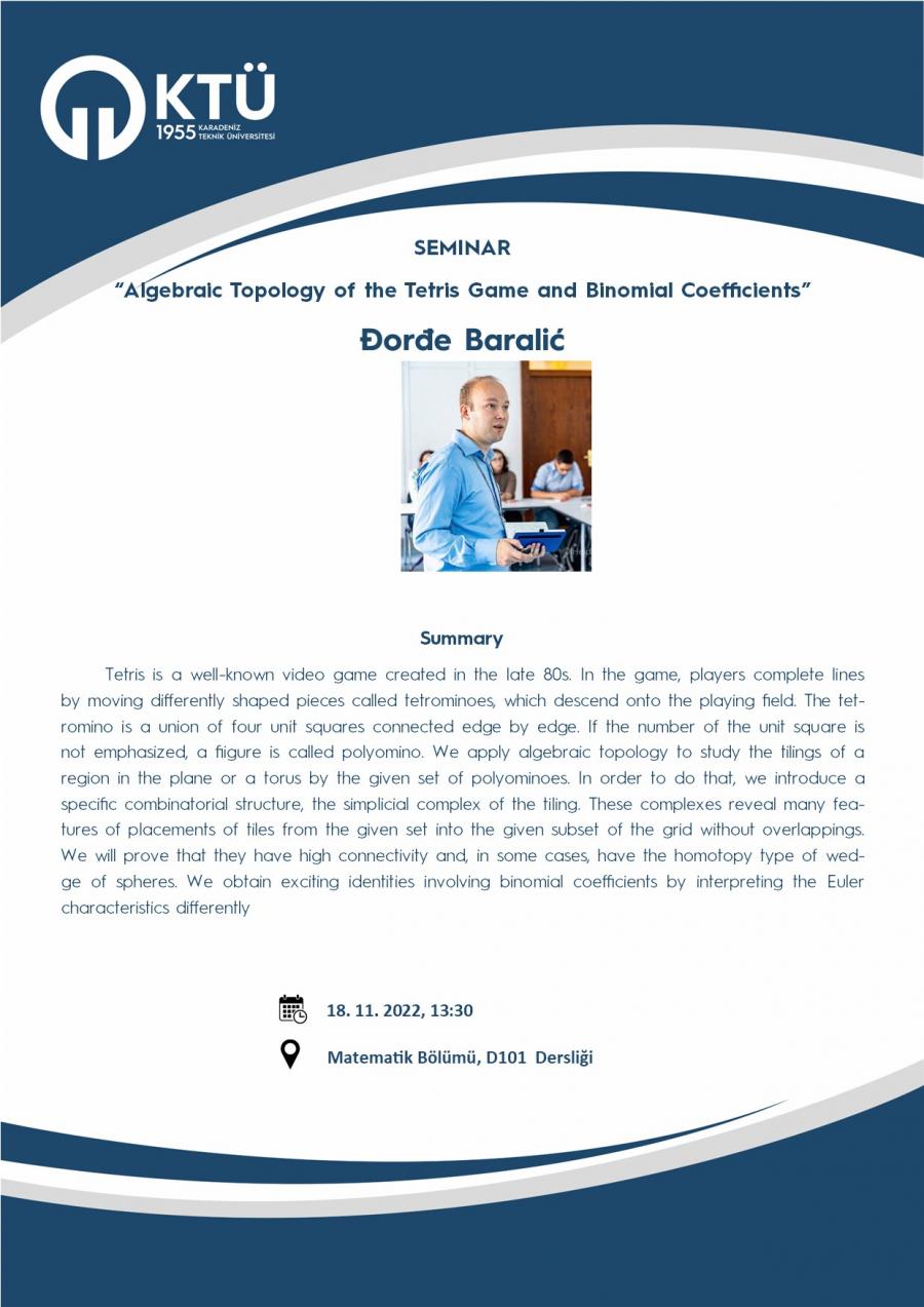 Seminar: Algebraic Topology of The Tetris Game and Binomial Coefficients