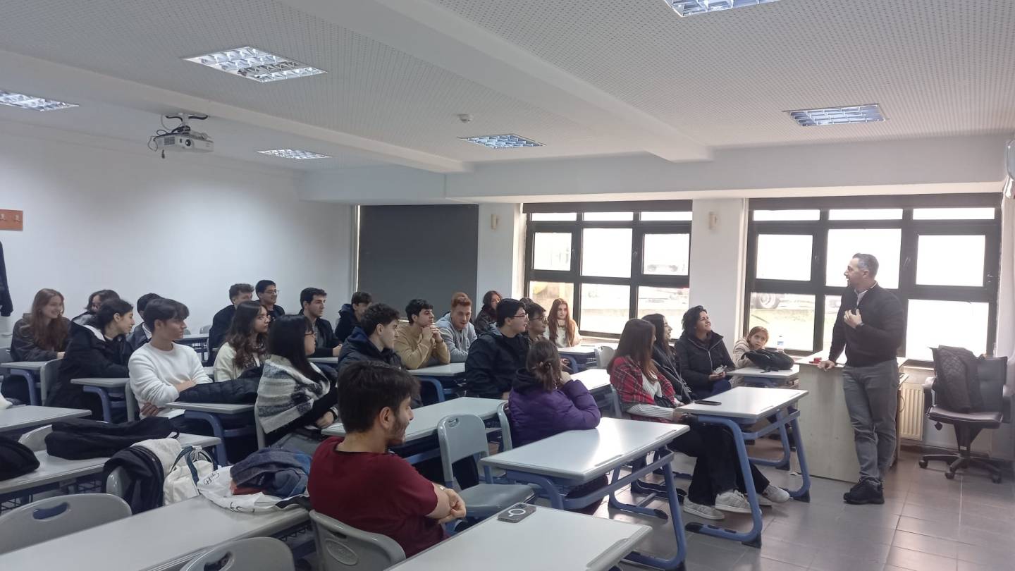 Ziyaret kapsamında, Dr. Öğr. Üyesi Ali Faruk ÖZYAŞAR tarafından Fakültemizin tanıtımı gerçekleştirildi. Öğrencilere eğitim-öğretim faaliyetlerimiz ve fakültemizin sunduğu olanaklar hakkında bilgi verildi. Ziyaret süresince öğrenciler, üniversite yaşamı ve akademik süreçler hakkında merak ettikleri soruları yöneltme fırsatı buldular. Etkinlik, samimi ve verimli bir atmosferde tamamlandı.