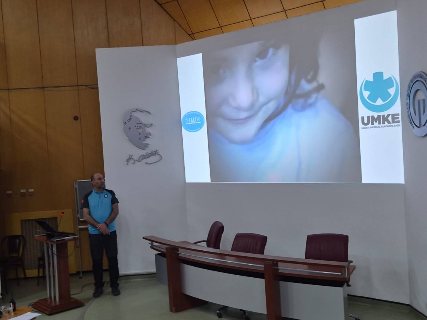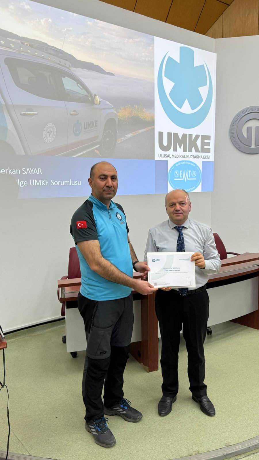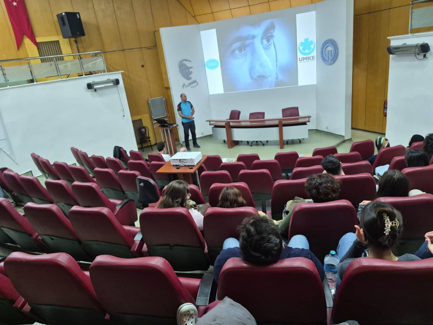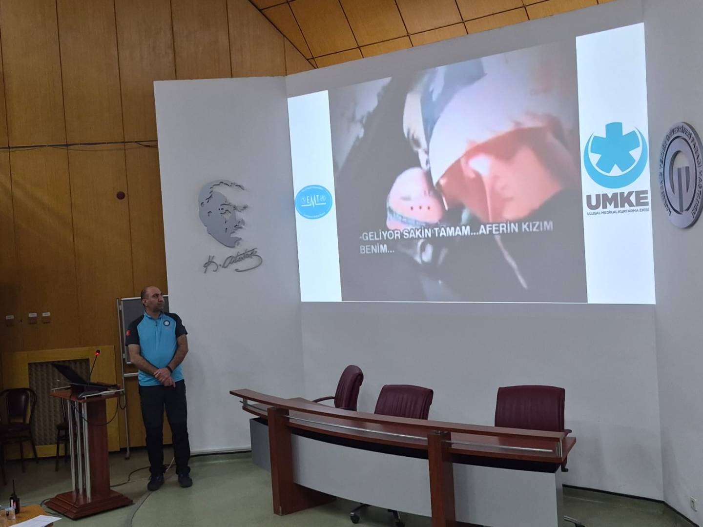 Gerçekleştirilen buluşmada İl UMKE Sorumlusu Sayın Serkan Sayar, afet ve acil durumlarda sahada yürütülen sağlık hizmetlerine ilişkin mesleki deneyimlerini öğrencilerimizle paylaştı. UMKE’nin çalışma yapısı, saha organizasyonu, kriz anlarında ekip çalışmasının önemi ve hekimlerin acil durum yönetimindeki rolü hakkında bilgilendirici bir sunum yaptı.