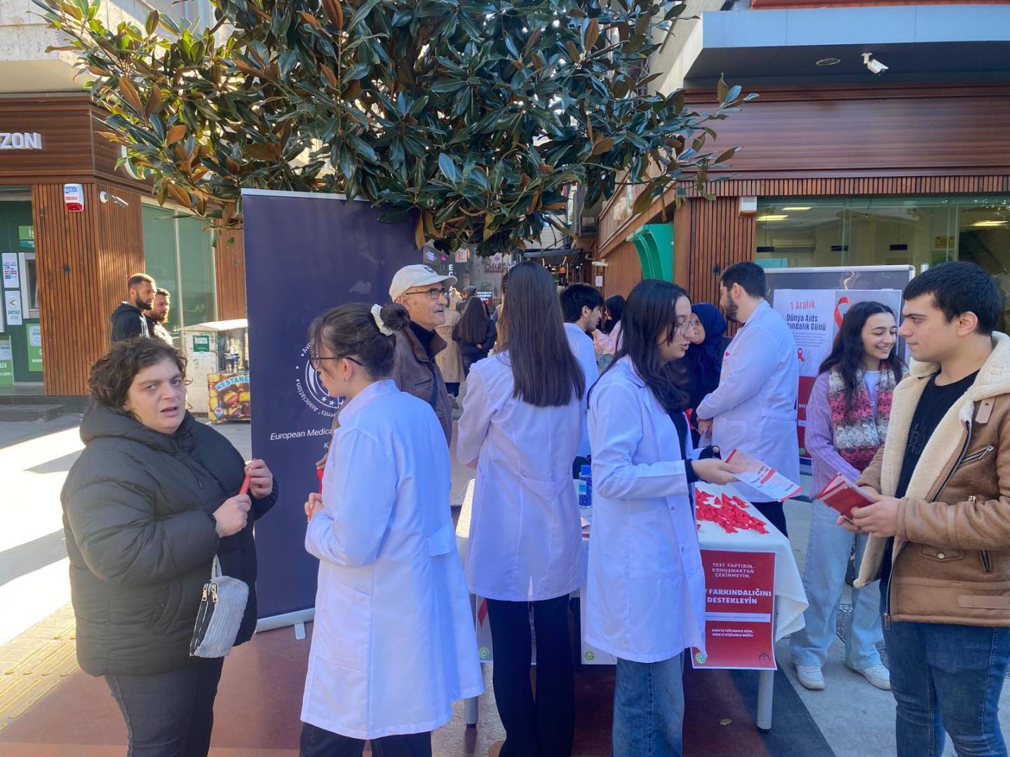Fakültemiz öğrencileri, AIDS’e karşı toplumda farkındalığı artırmak amacıyla sahada bilgilendirme etkinliği düzenledi. Geleceğin doktorları, HIV/AIDS konusunda doğru ve güncel bilgiye erişimi desteklemek için vatandaşlarla birebir iletişim kurdu.