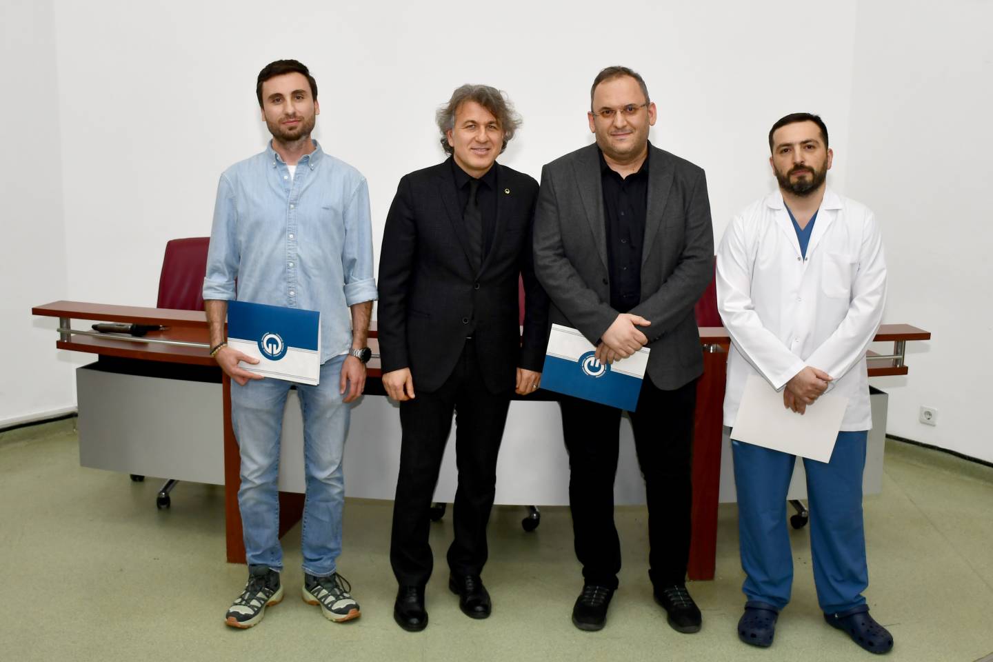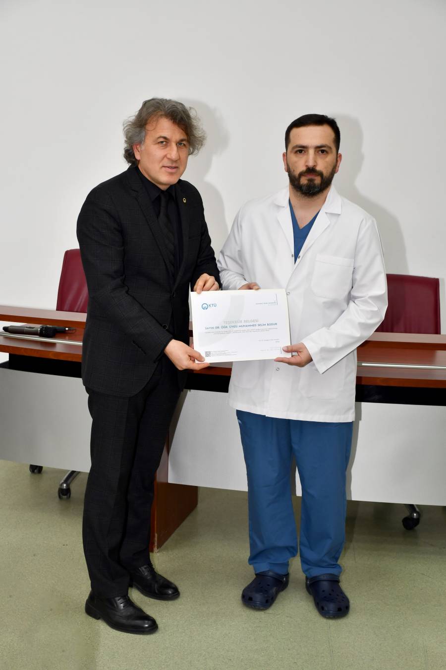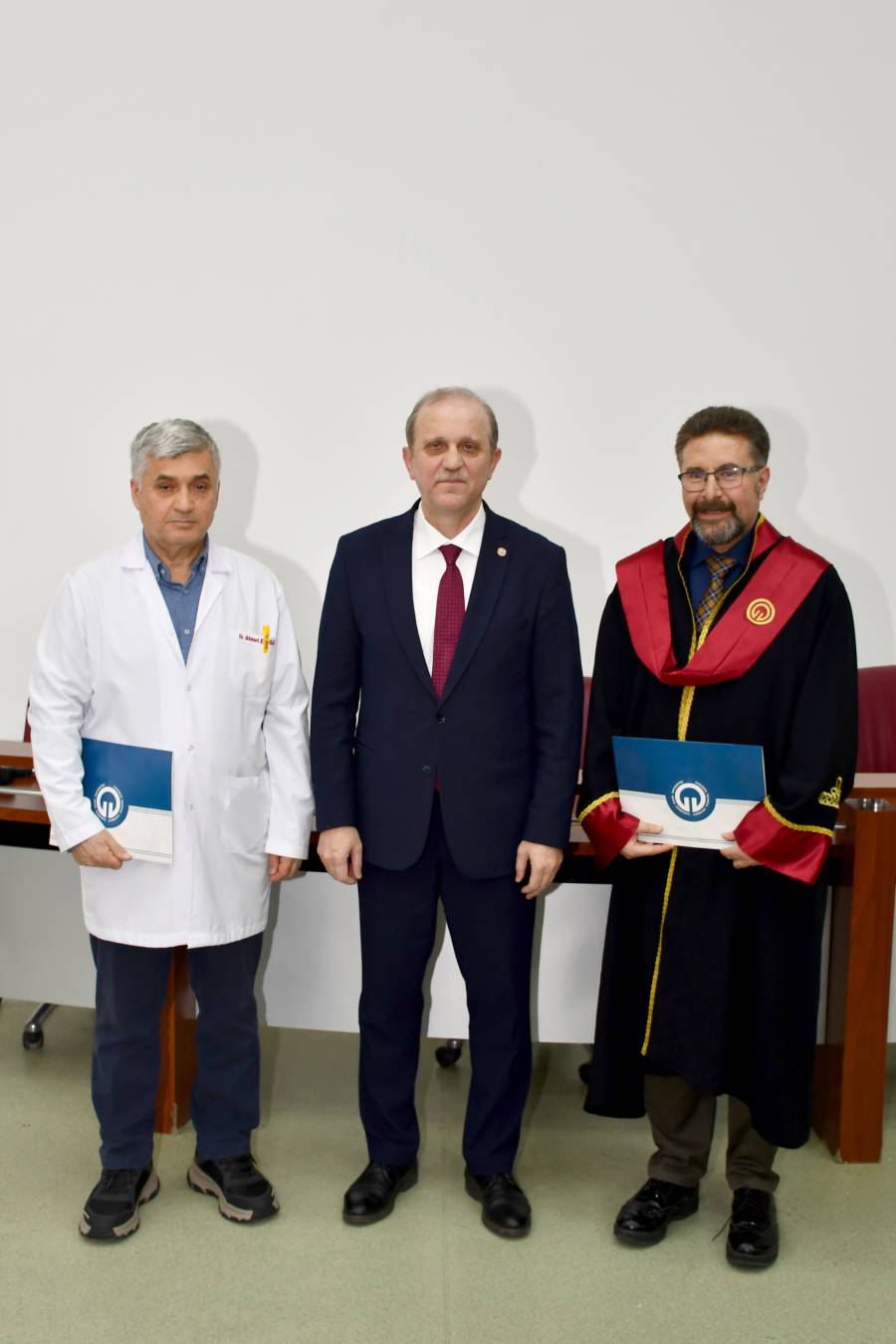 Fakültemizde uzmanlık eğitimlerini tamamlayan dört hekim için düzenlenen törende, plaketleri dekanımız tarafından takdim edildi.